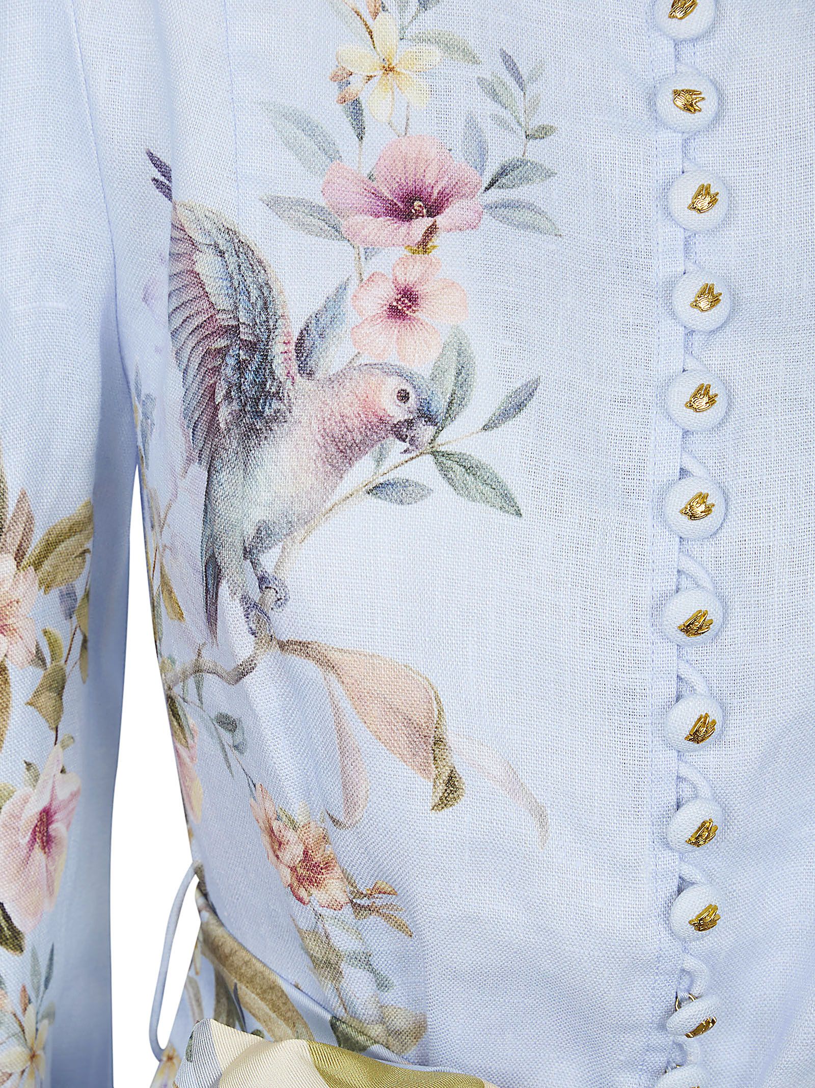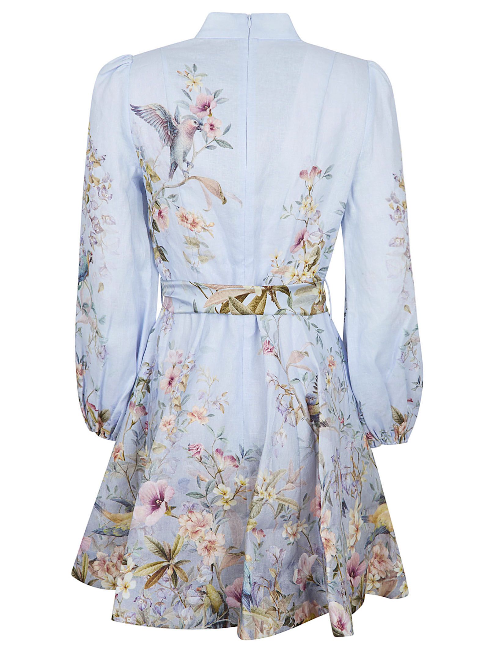 Rebellion linen dress by ZIMMERMANN.Stand collar; long puff sleeves and elastic cuffs; roulé buttons on the front of the bodice and a hidden center zipper closure at the back; long flared skirt.Features a removable scarf belt.