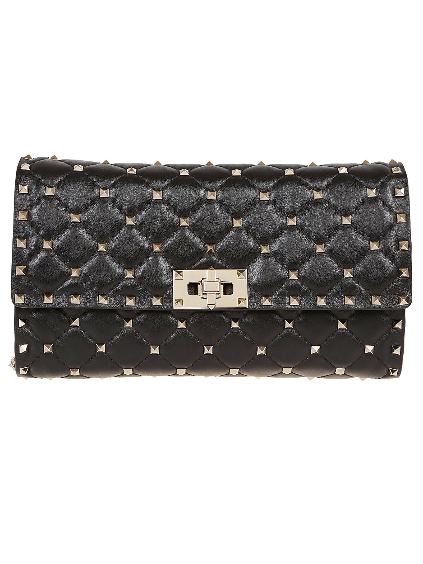 Rockstud Spike shoulder bag in soft lamb nappa BY VALENTINO GARAVANI.Flap with twist lock.The bag can be worn both by hand and over the shoulder thanks to the removable chain.Quilted and decorated with small platinum-colored studs like the other metal parts.