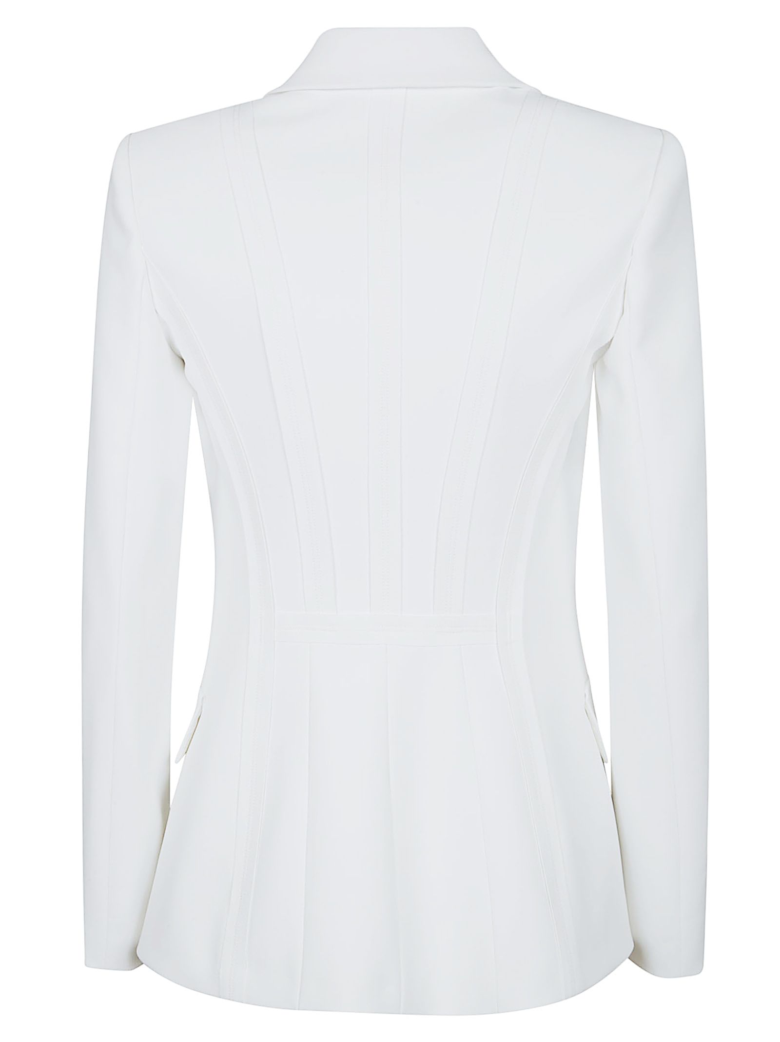Double-layer stretch crepe jacket by ELISABETTA FRANCHI.Padded shoulders; notched lapels; matching buttons; patch flaps with embroidered logo; slim fit.Featuring a monogrammed satin lining and flaps embellished with an embroidered logo detail.