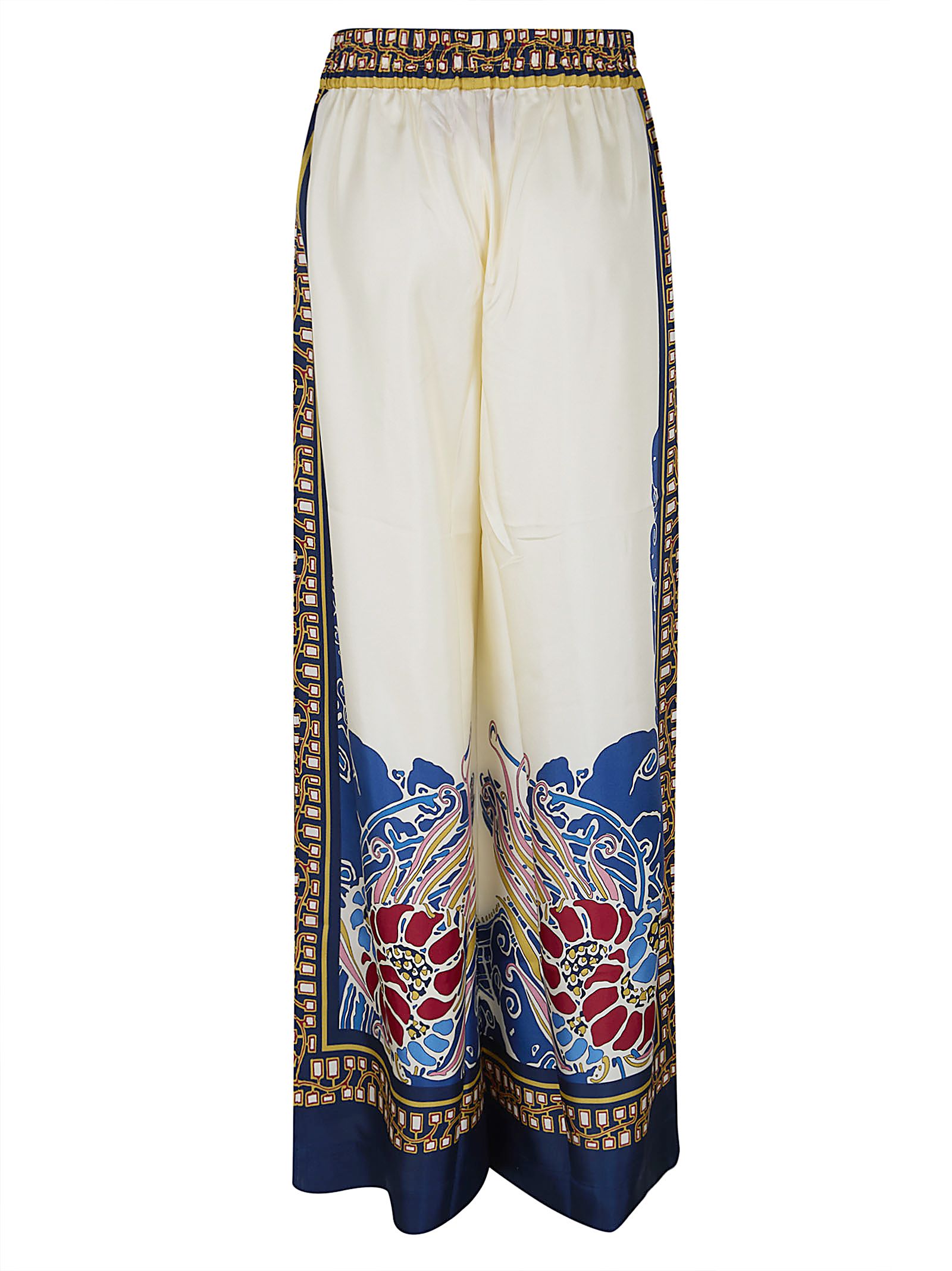 Silk twill palazzo pants by LA DOUBLEJ.Elastic waist; concealed side pockets; loose-fitting design.Featuring a Lemuria print.