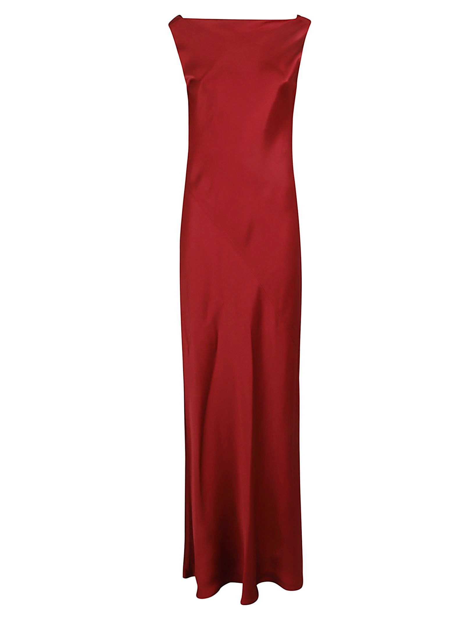 Abito MARSALA in cady di ANTONELLI FIRENZE.Girocollo; maniche lunghe; chiusura a goccia con bottoncino sul retro; design lungo che segue le forme del corpo.