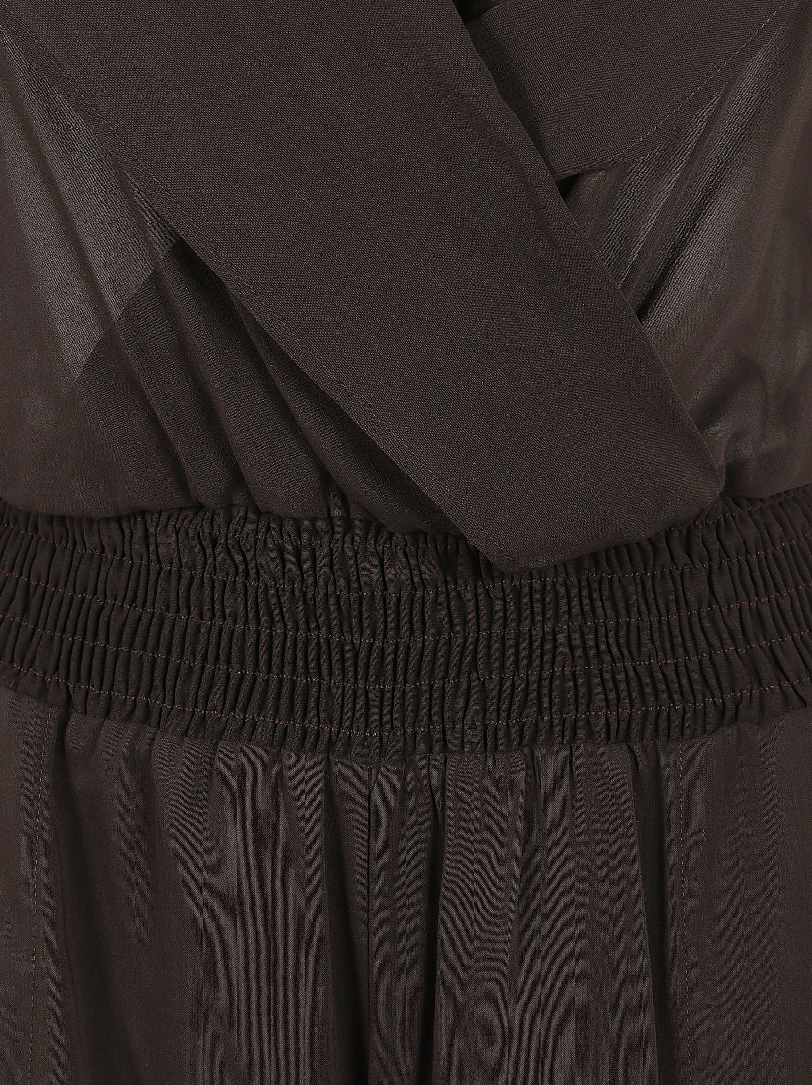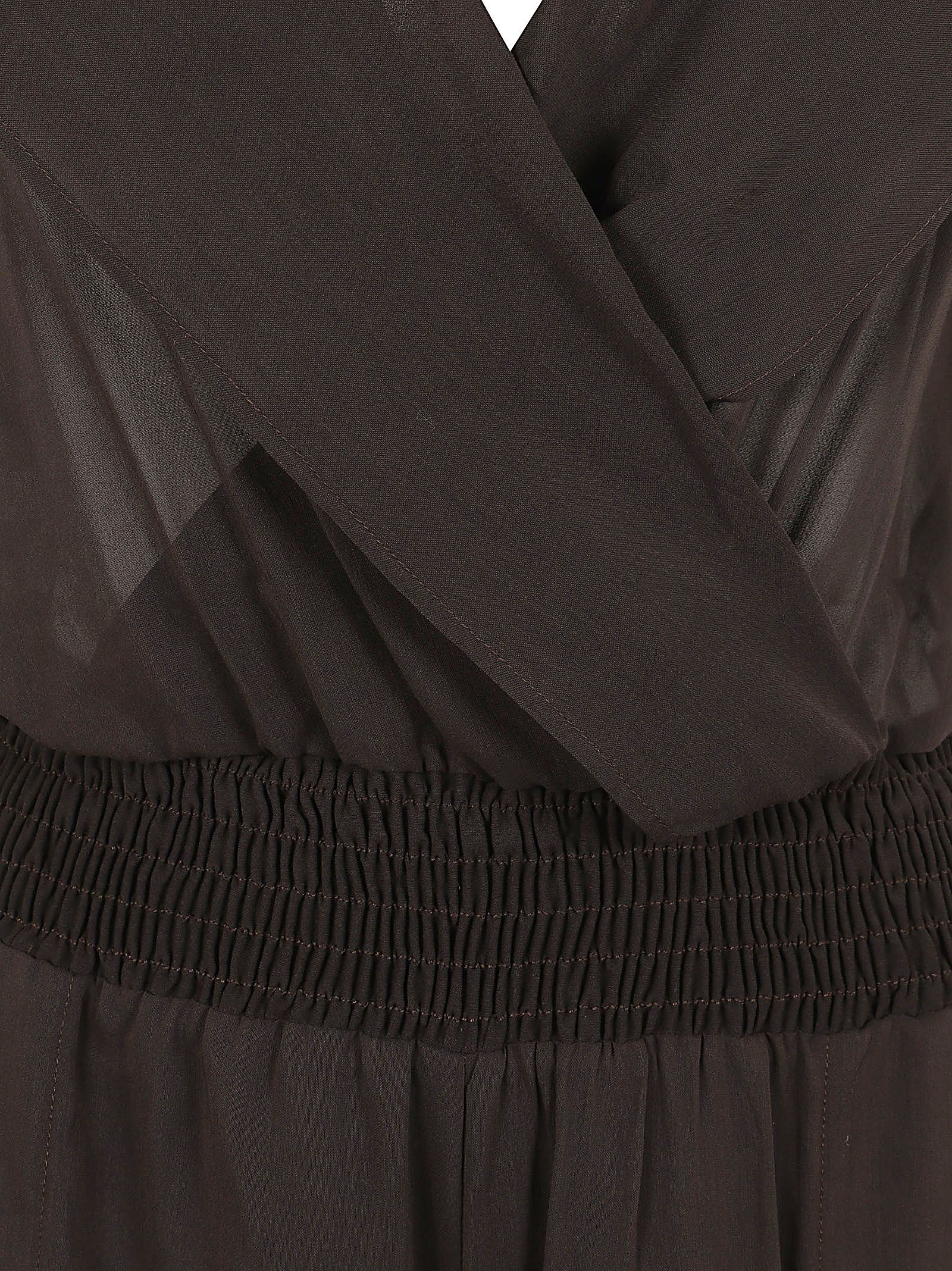 La parte superiore presenta maniche corte a farfalla, uno scollo a V incrociato sul davanti e un ampio scollo sulla schiena.