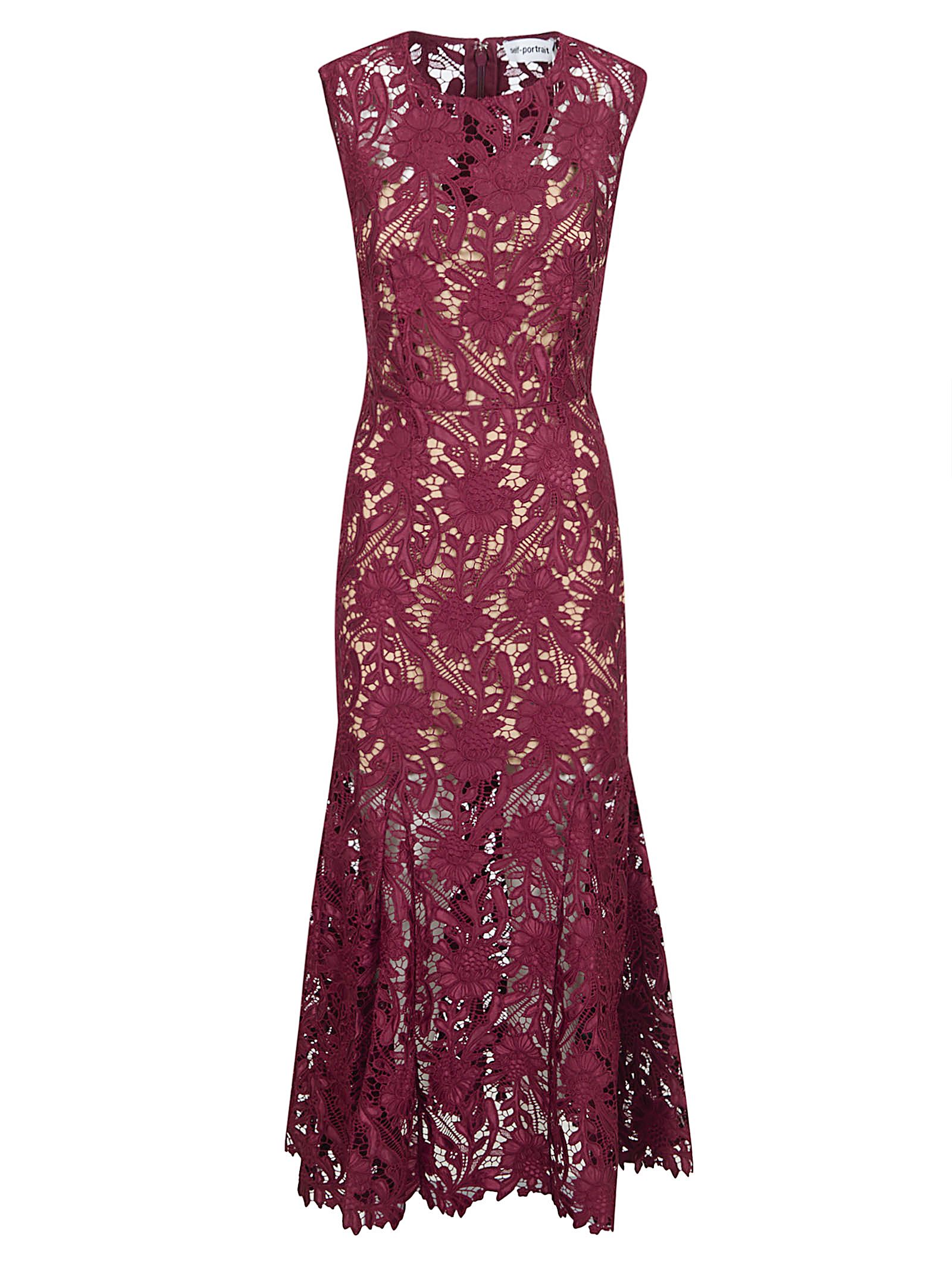 BURGUNDY GUIPURE LACE MIDI DRESS SELF-PORTRAIT
