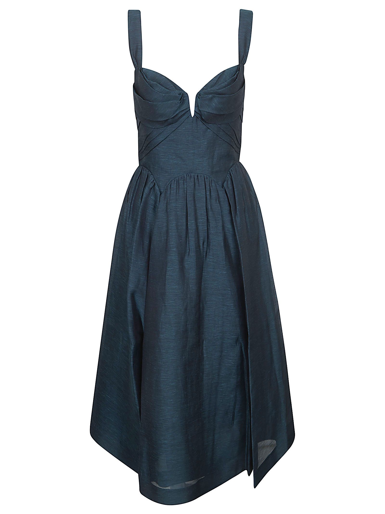Abito Rebellion in organza di seta e lino di ZIMMERMANN.Busto: scollo a cuore, drappeggio sul busto, rinforzo interno, elastico arricciato sulle spalline e sul retro; Gonna: foderata, design lungo e svasato.