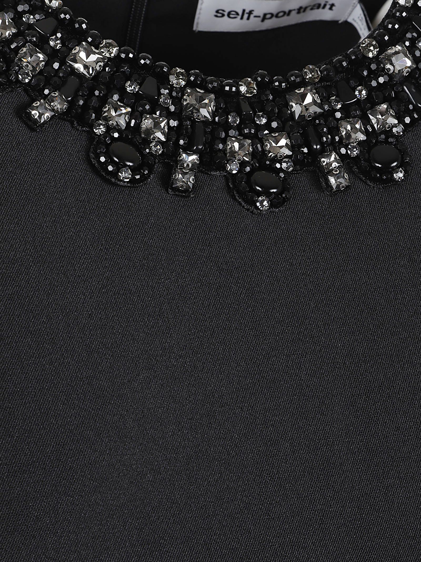 BLACK TAFFETA EMBELLISHED TRIM MINI DRESS SELF-PORTRAIT