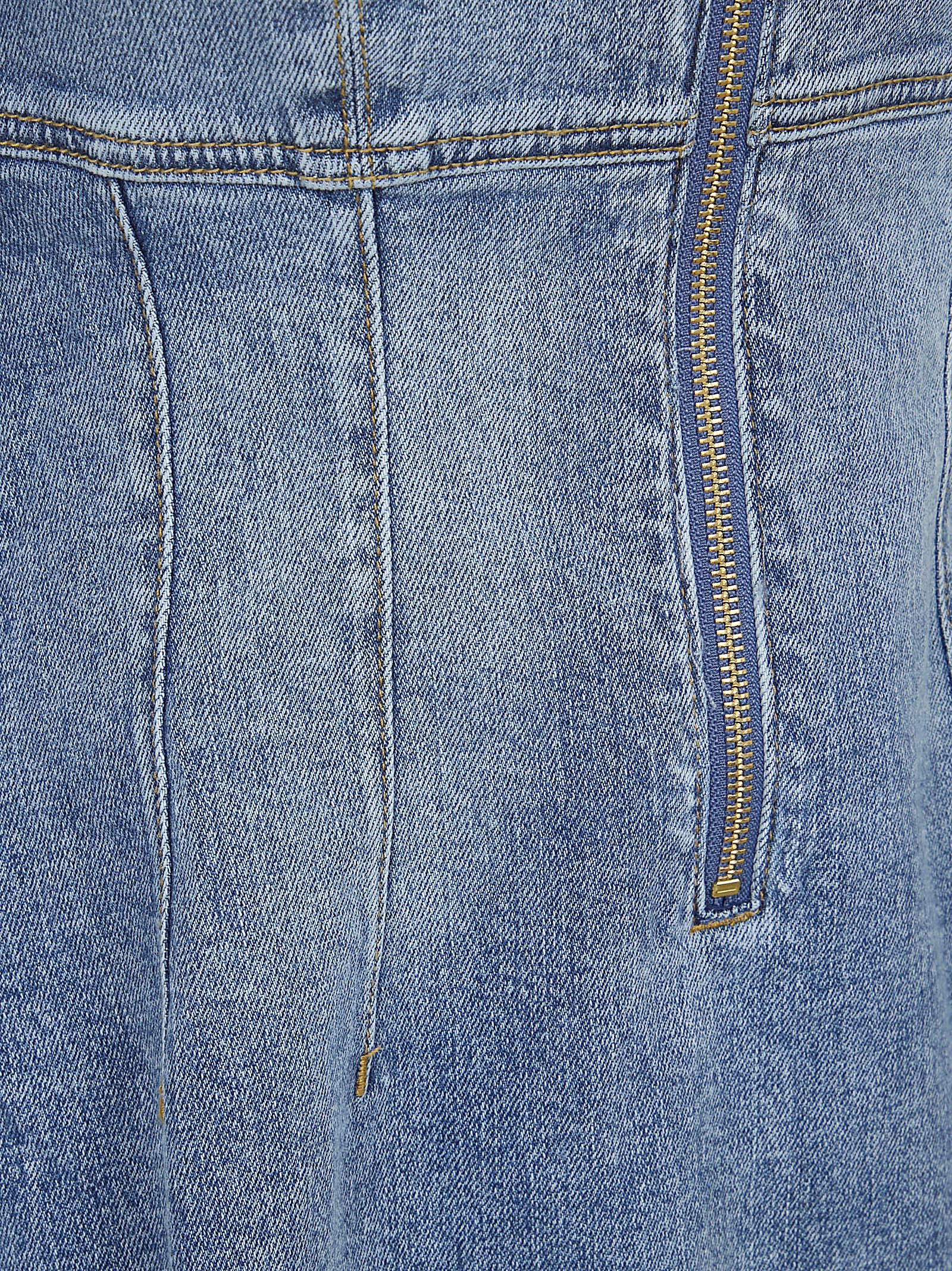 Abito in denim elasticizzato di SELF-PORTRAIT.Top a corsetto e gonna mini ampia e svasata; design vestibilità che segue le forme del corpo con vita aderente. Caratterizzato da cerniera a vista sul davanti e ricamo Logo.