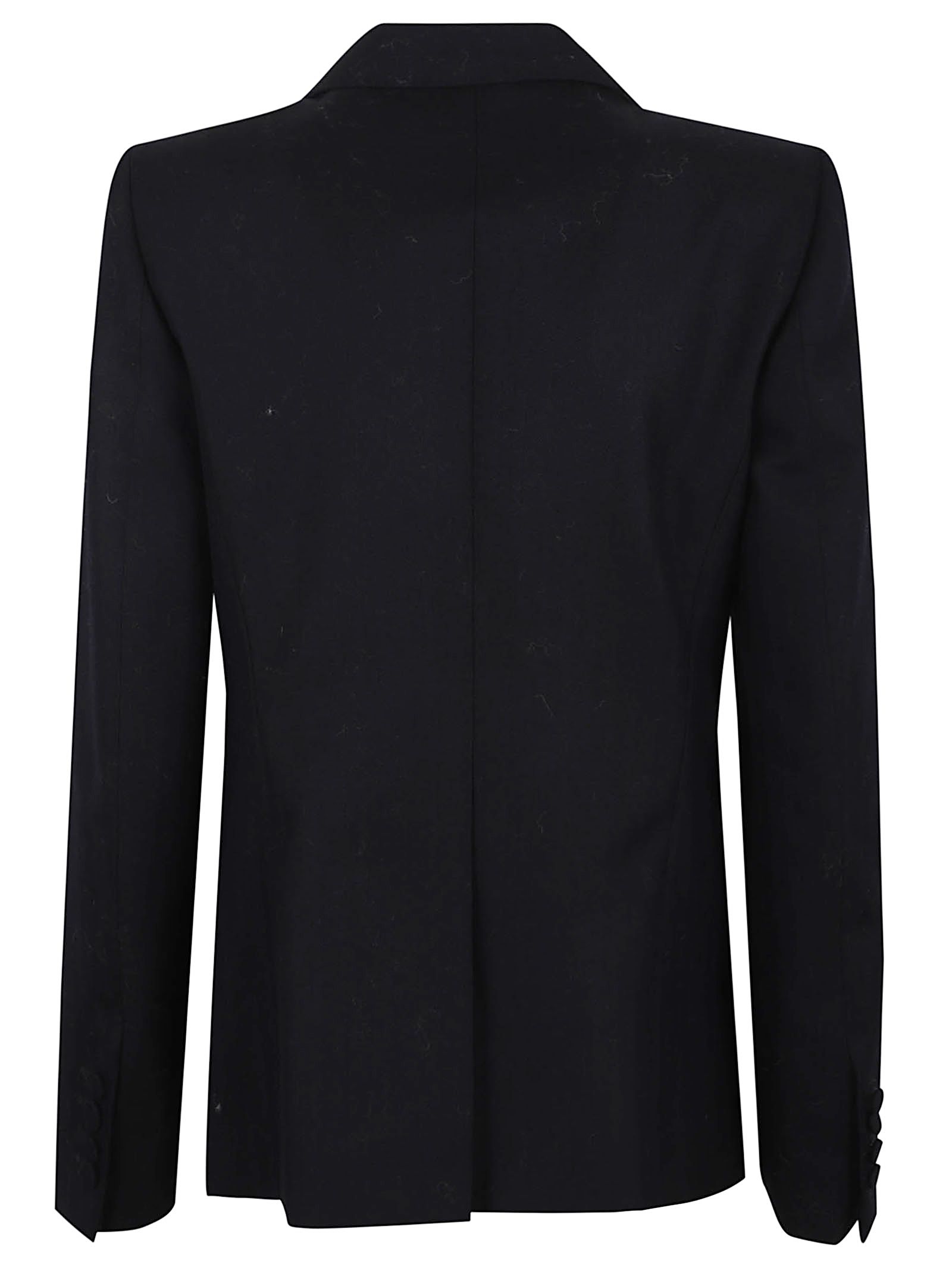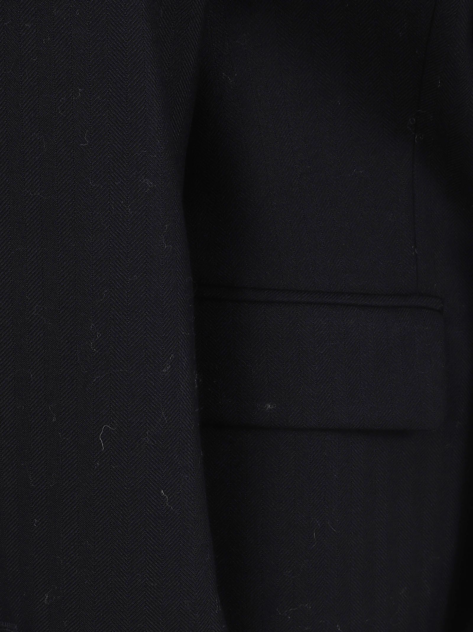 blu scuro doppio petto revers a punta spalle imbottite polsini con bottone multiple tasche
