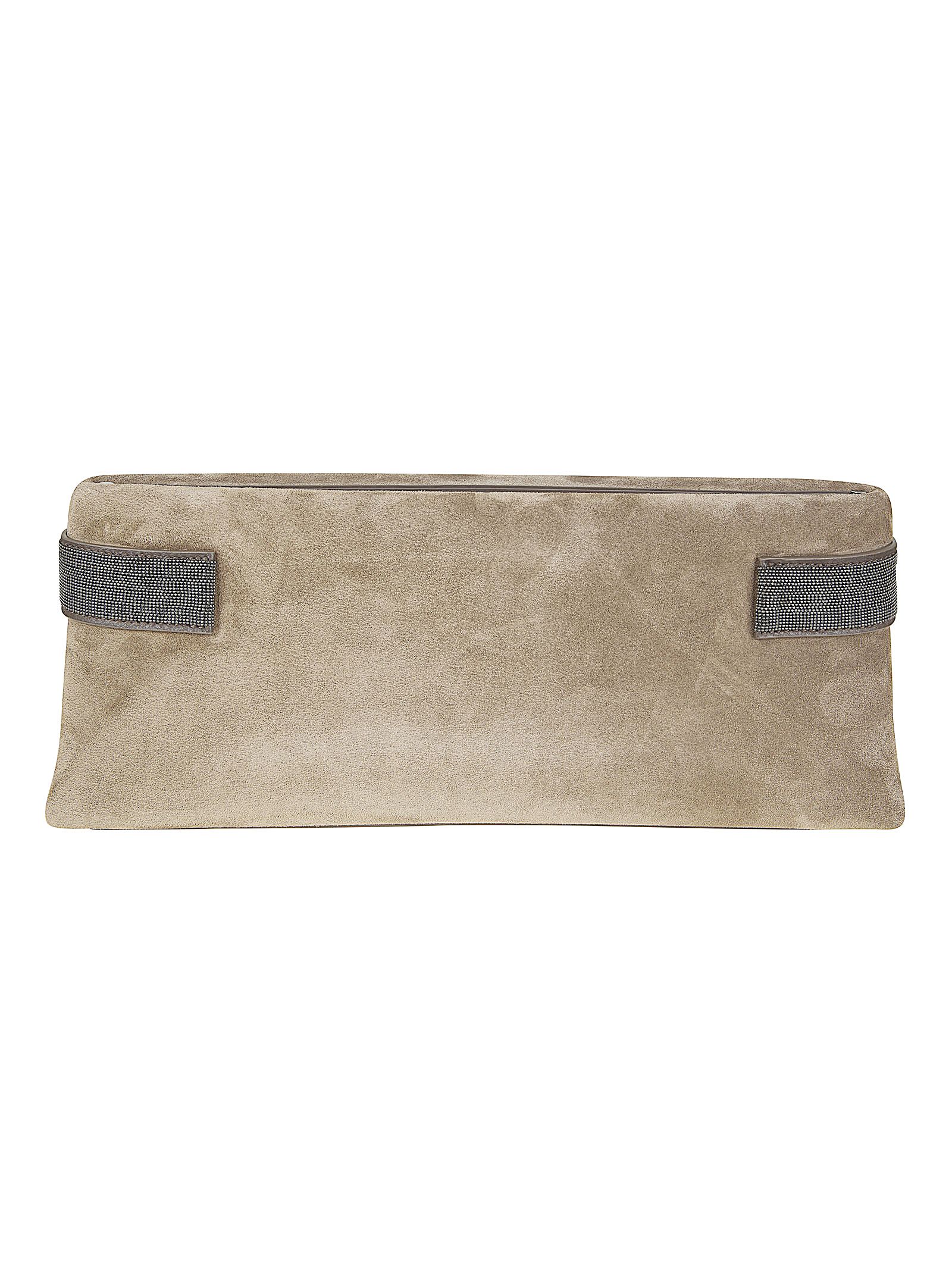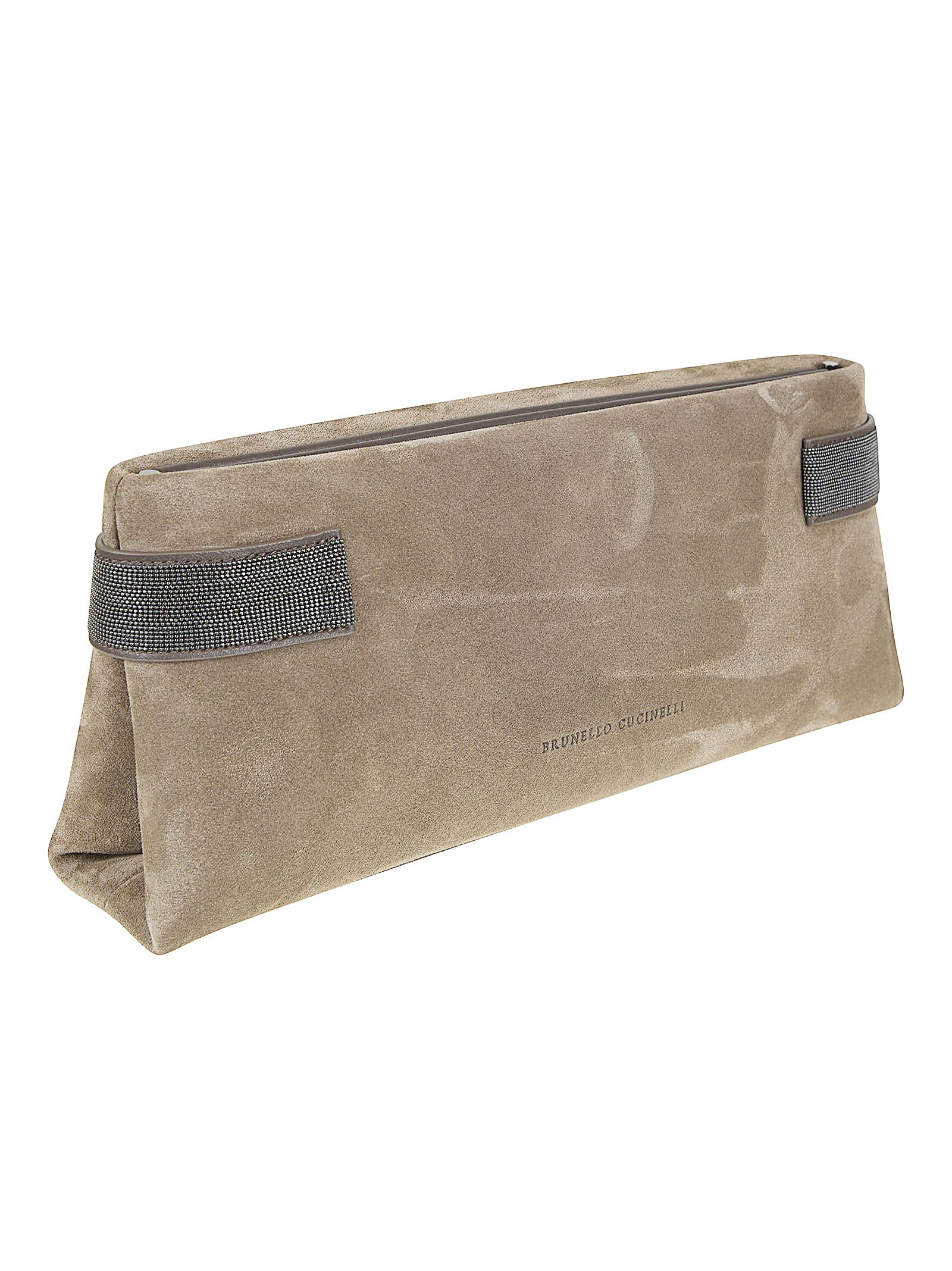 Borsa Pouch in camoscio di BRUNELLO CUCINELLI.Chiusura superiore con zip.Caratterizzata da applicazioni in monile Nickel-free.
