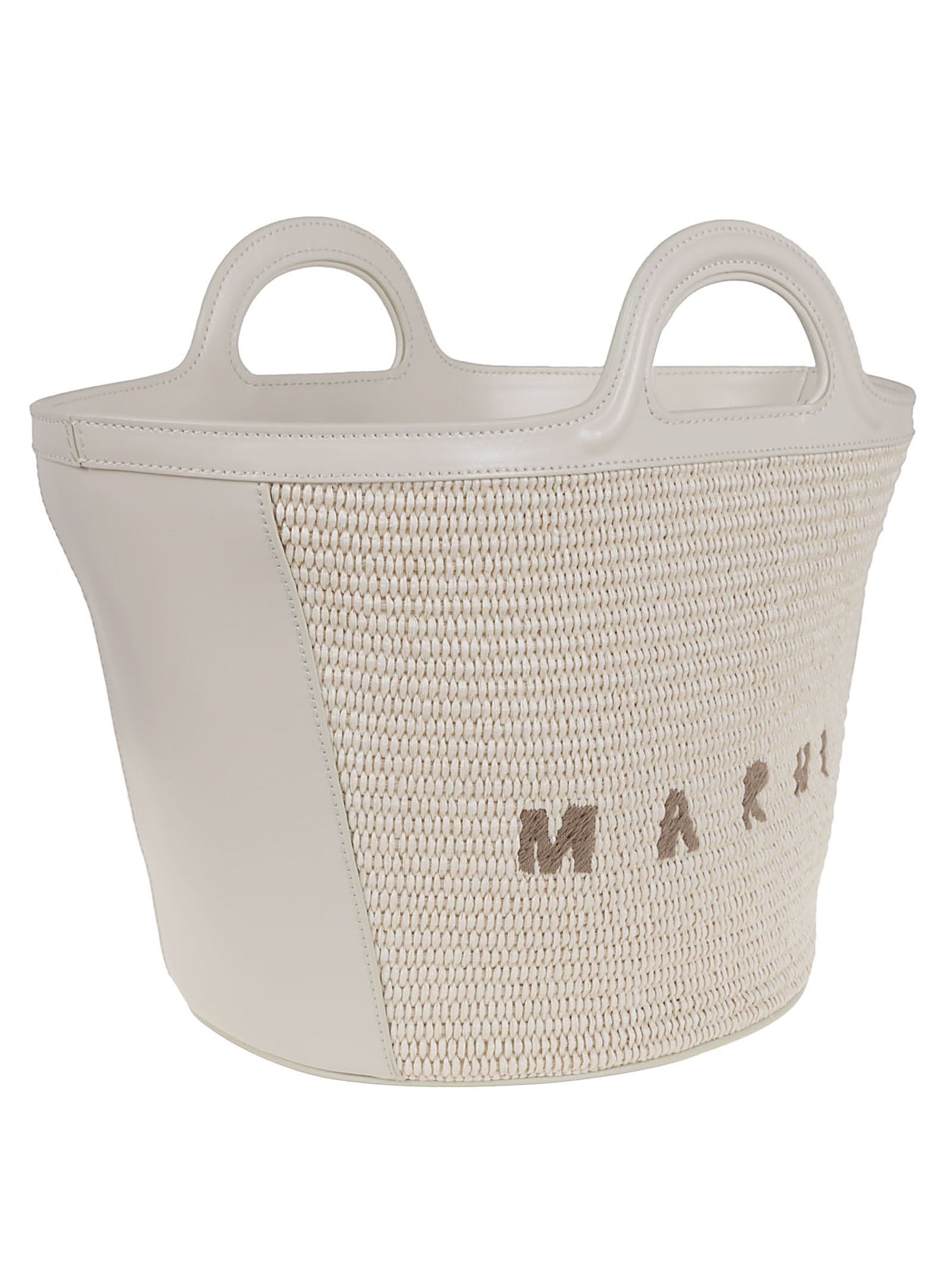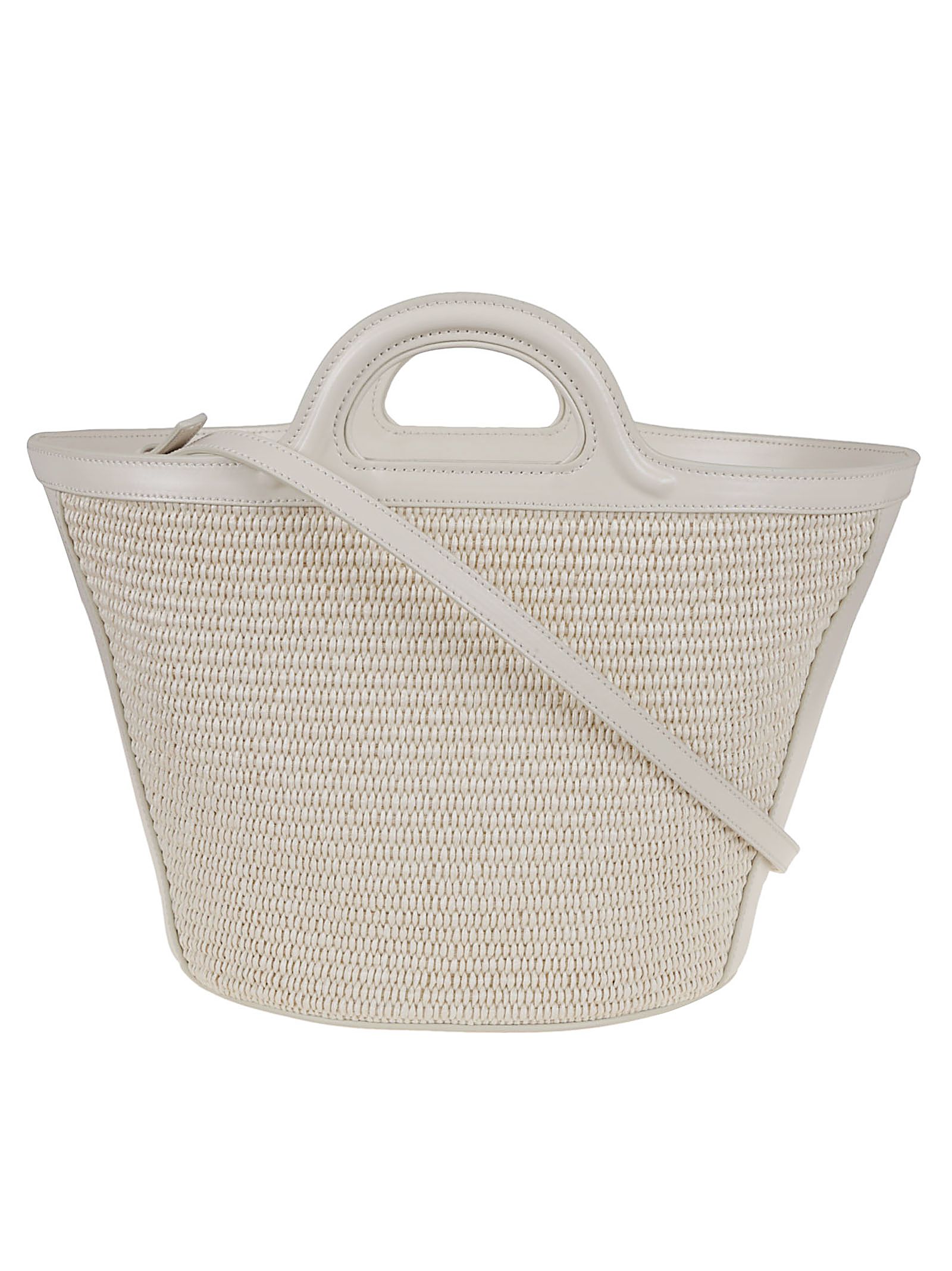 Borsa Tropicalia misura small BY MARNI.Realizzata in pelle e con pannelli in rafia intrecciata. Portabile a mano e tracolla. Maniglie con dettagli in rilievo. Fondo in cuoio. Tracolla in pelle staccabile.Dettaglio logo ricamato sul davanti.