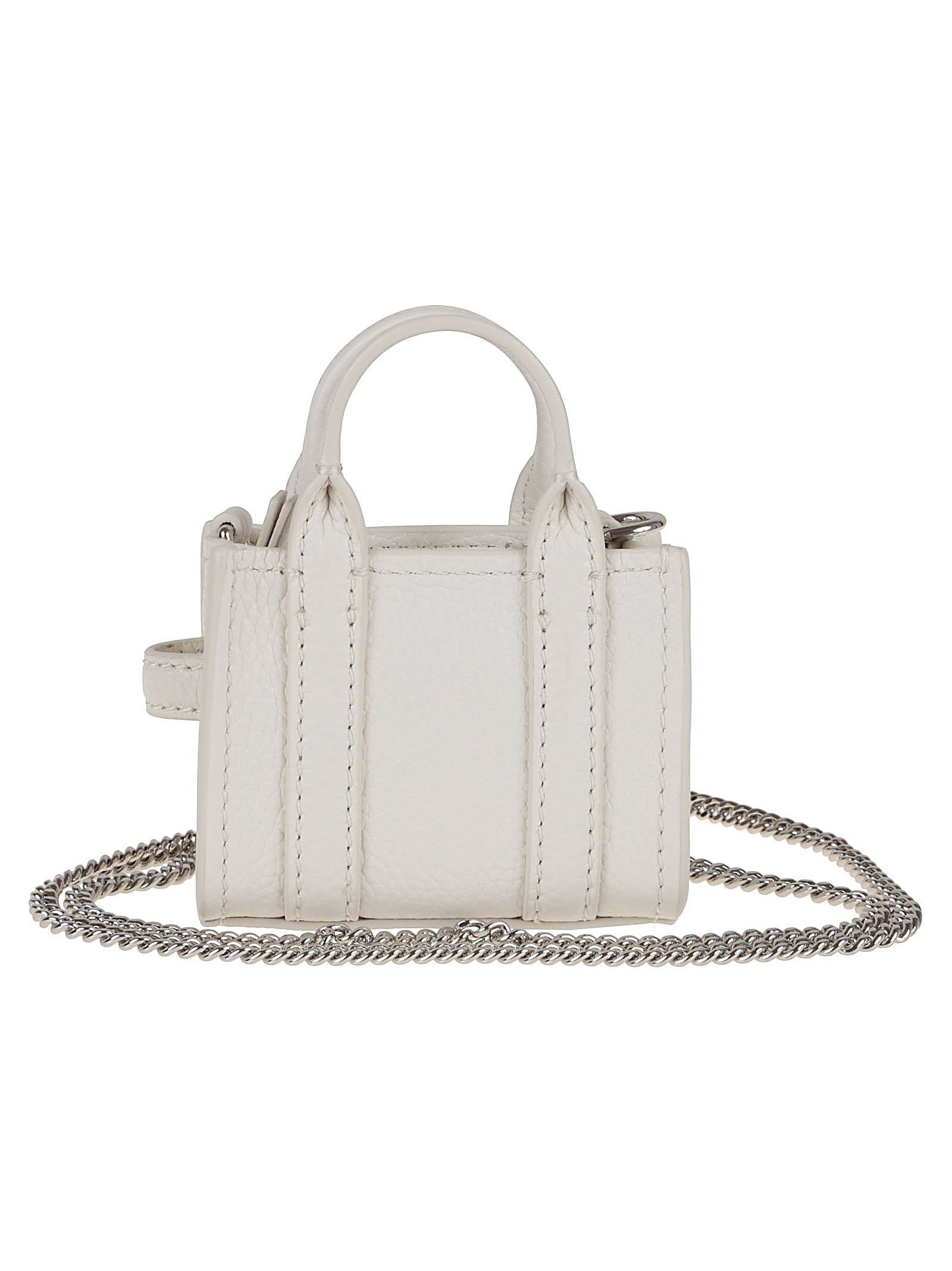 THE NANO TOTE CROSSBODY in pelle pieno fiore di MARC JACOBS.Chiusura con cerniera superiore; tracolla a catena.Caratterizzata da marchio omonimo a pressione. Interpretazione in miniatura della silhouette originale della Tote Bag "The", questa Nano Tote è perfetta per riporre contanti, carte, auricolari, rossetto e chiavi.