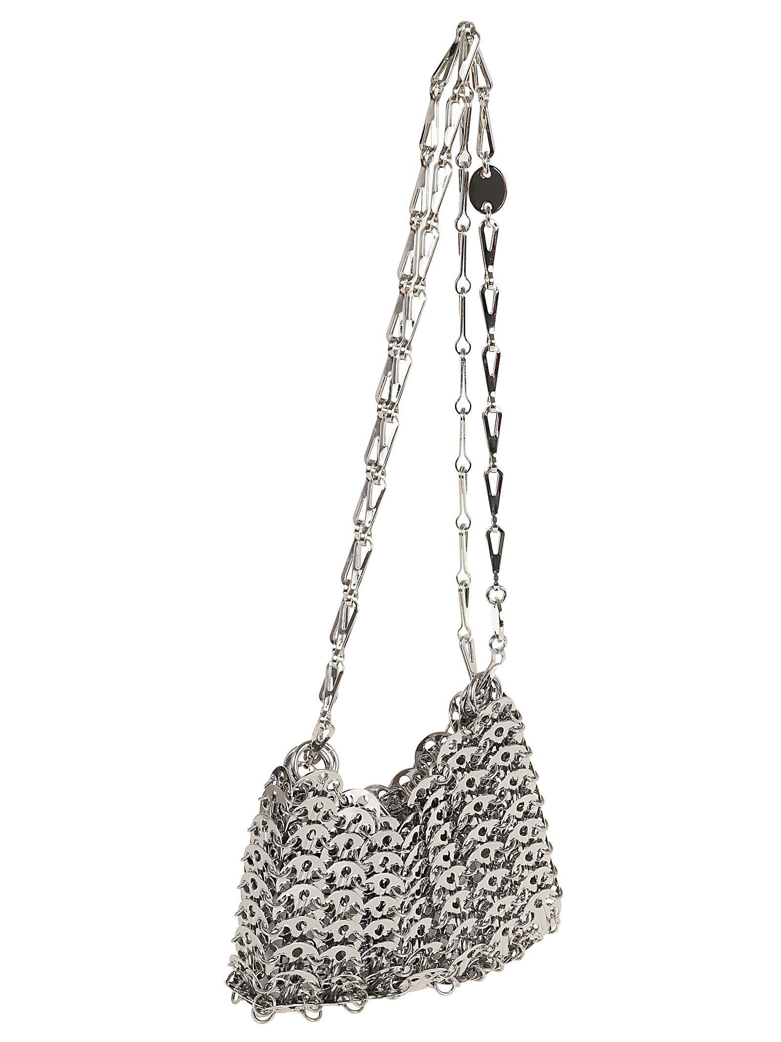 La borsa metallica del 1969 simboleggia l`eleganza innovativa di Rabanne.Realizzata con materiali sperimentali e assemblata a mano.