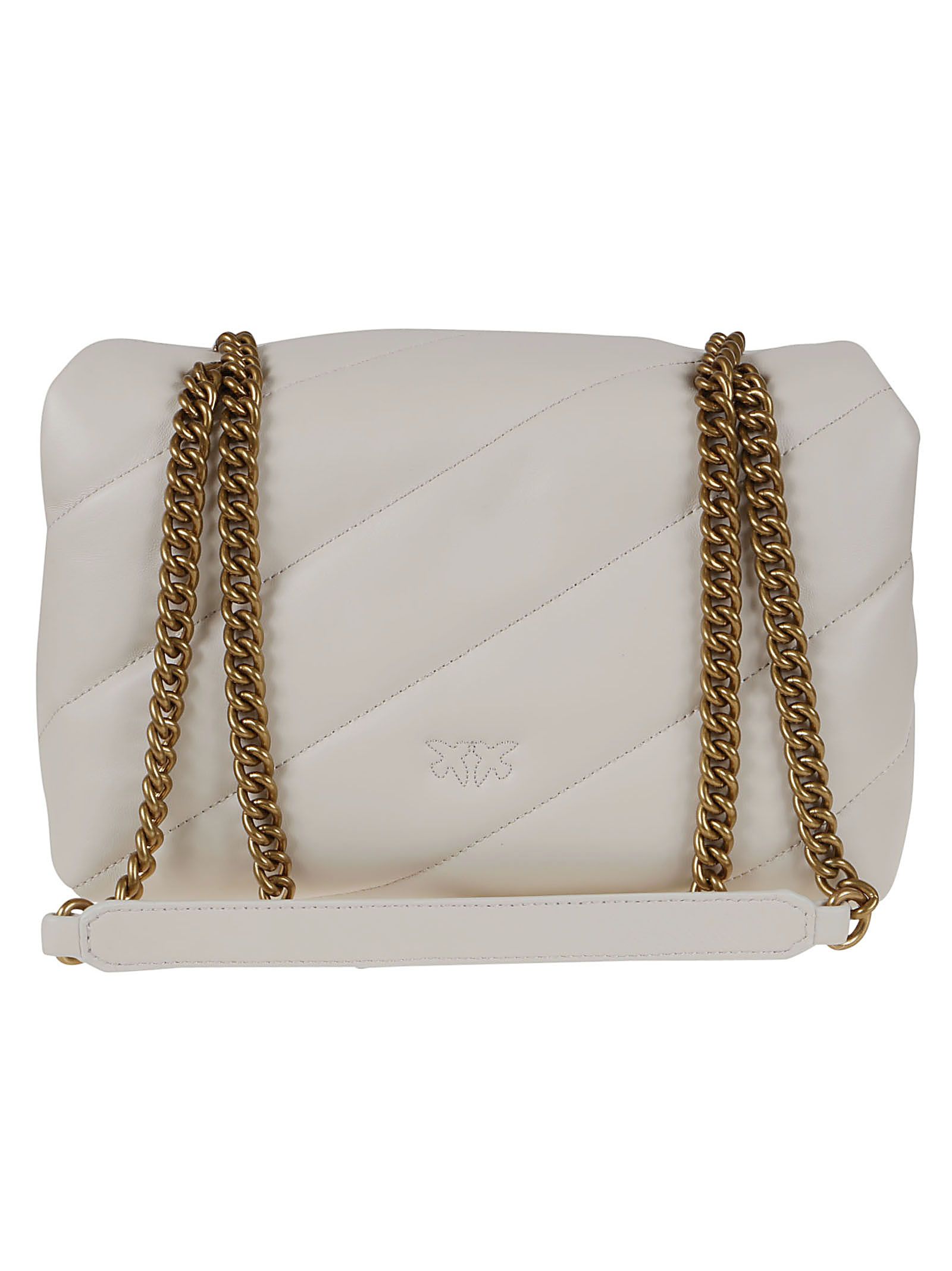 Borsa a tracolla "Love Puff" di PINKO Realizzata in pelle di vitello, caratterizzata da texture trapuntata, Dettaglio con fibbia con logo, tracolla a catena, tasca interna con zip e tasca interna a bustina.Un must del brand, presente in tutte le collezioni con le novità dei colori !