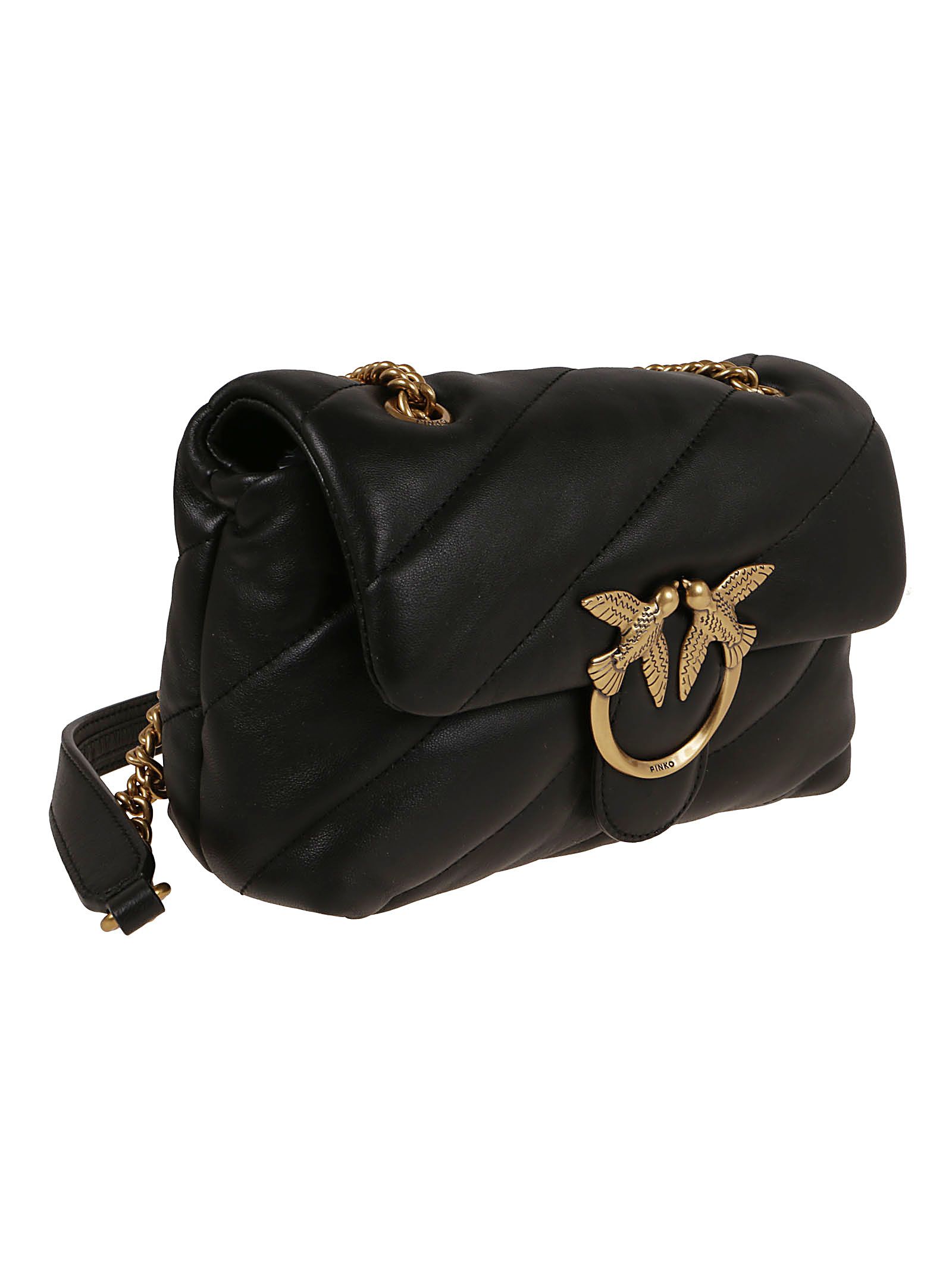 Borsa a tracolla "Love Puff" di PINKO Realizzata in pelle di vitello, caratterizzata da texture trapuntata, Dettaglio con fibbia con logo, tracolla a catena, tasca interna con zip e tasca interna a bustina.Un must del brand, presente in tutte le collezioni con le novità dei colori !