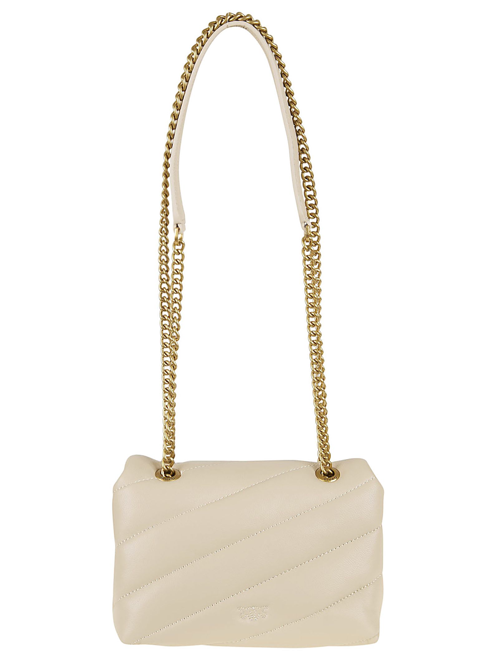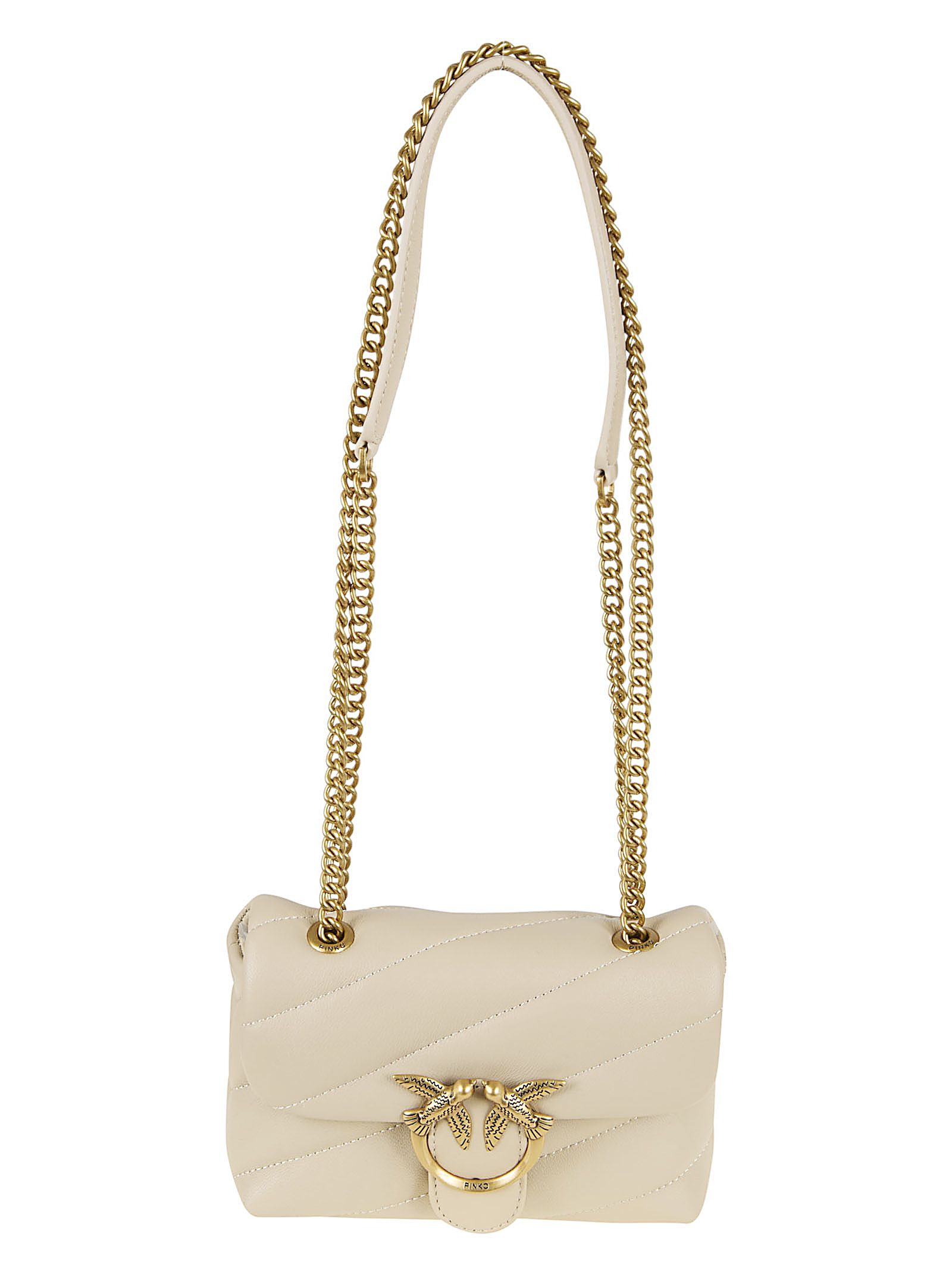 Borsa a tracolla trapuntata "Love Birds" di PINKO Realizzata in pelle trapuntata, caratterizzata da placca con logo, risvolto con chiusura con bottone a pressione, tracolla con maglie a catena, scomparto principale, tasca interna con zip e fodera interna.