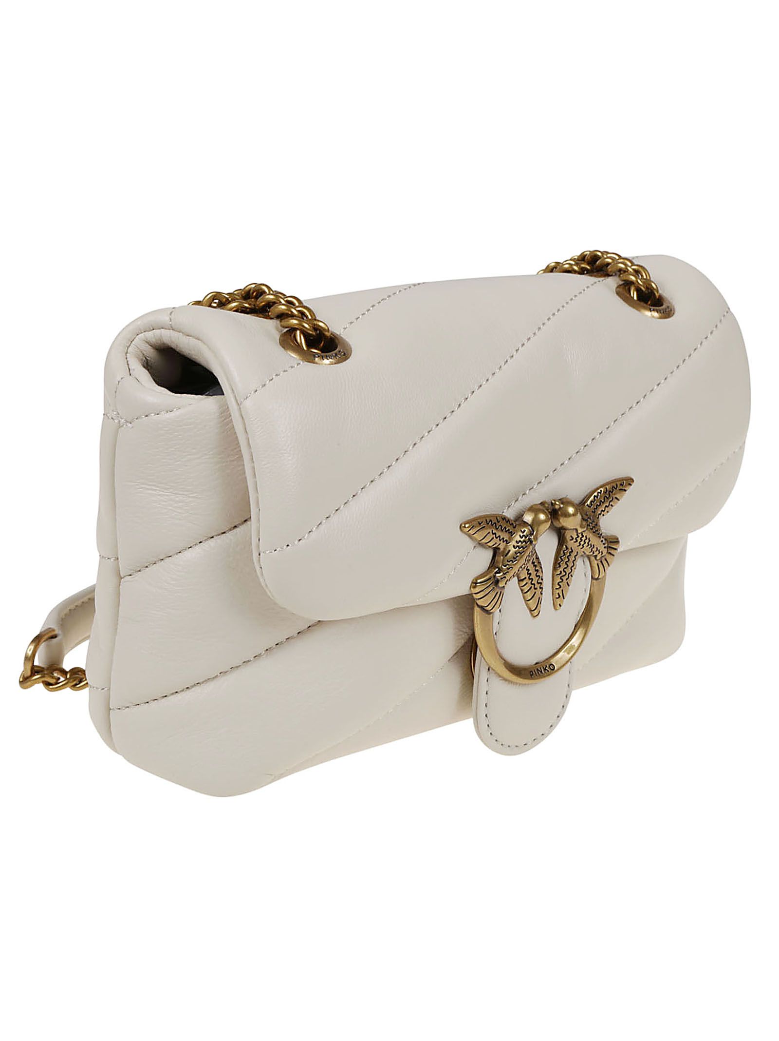 Borsa a tracolla trapuntata "Love Birds" di PINKO Realizzata in pelle trapuntata, caratterizzata da placca con logo, risvolto con chiusura con bottone a pressione, tracolla con maglie a catena, scomparto principale, tasca interna con zip e fodera interna.