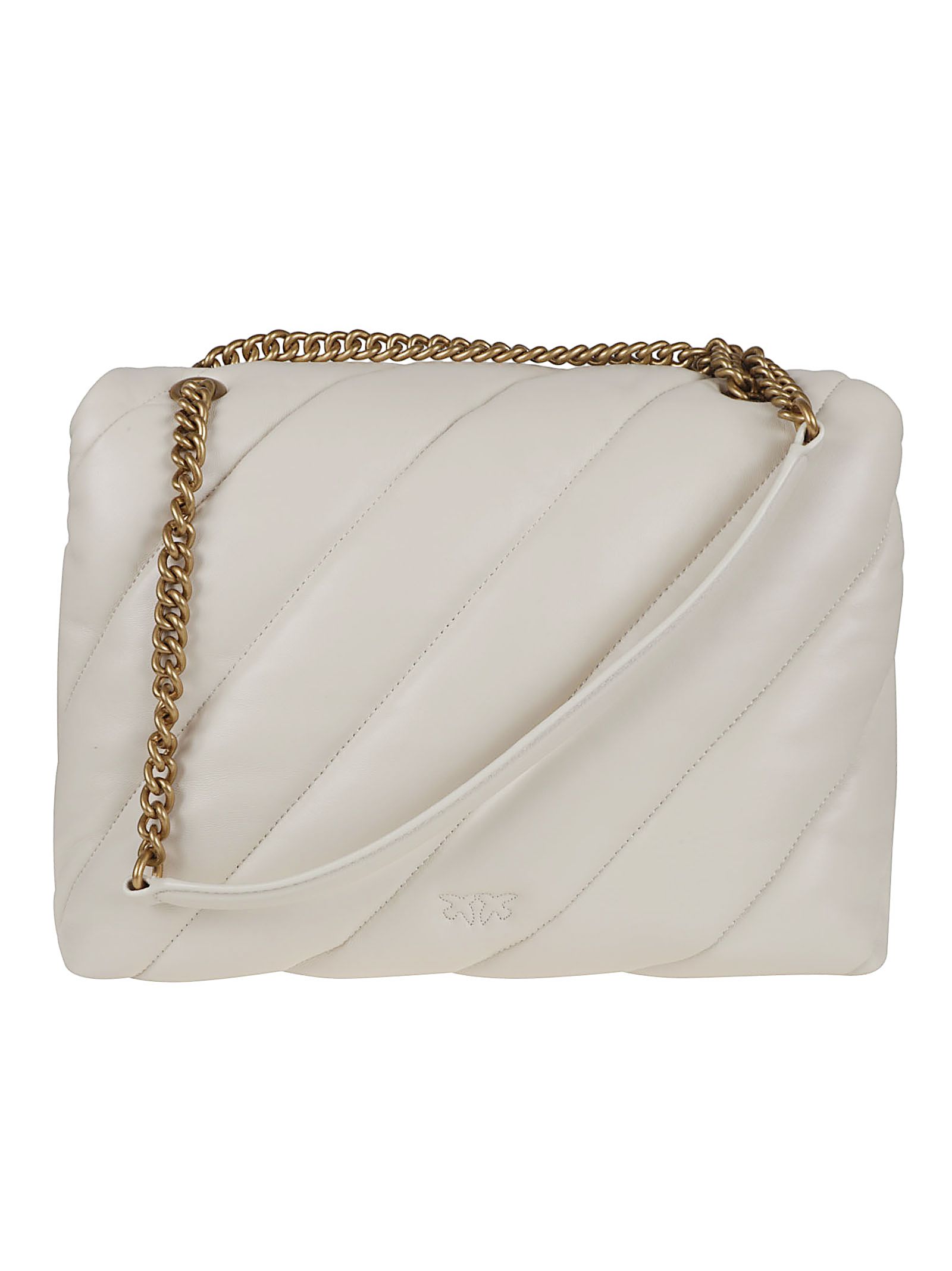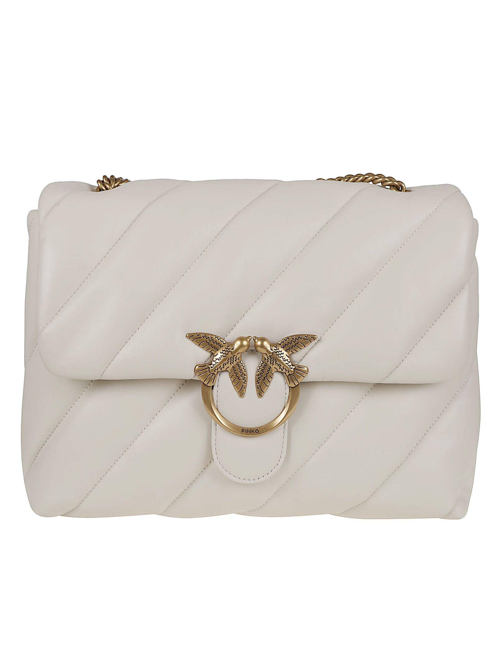 Borsa a tracolla trapuntata Lovebird BY PINKOCaratterizzata da placca con logo color oro, realizzata in pelle nera, Tracolla con maglie a catena, risvolto con chiusura magnetica, tasca interna con zip e scomparto principale.