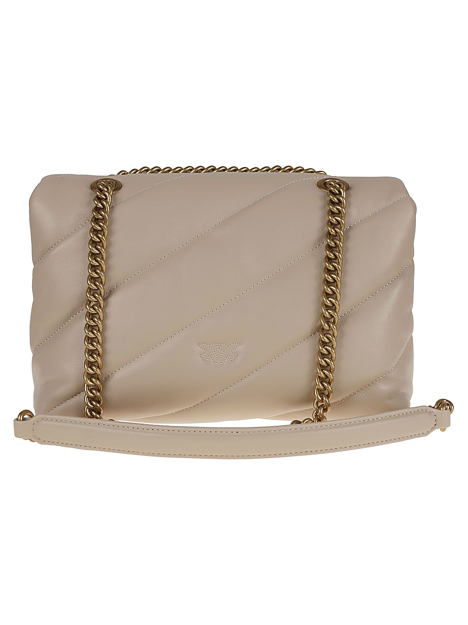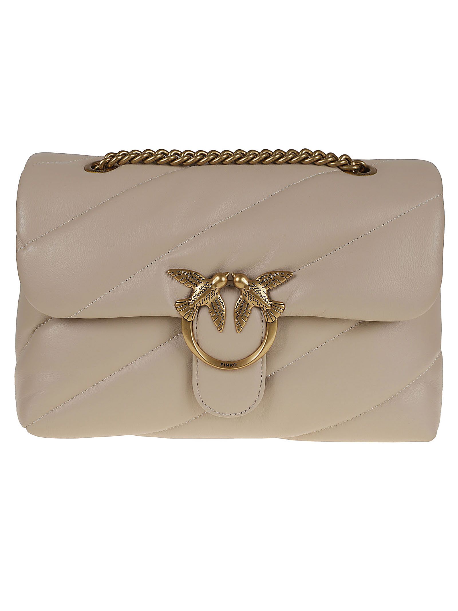 Borsa a tracolla "Love Puff" di PINKO Realizzata in pelle di vitello, caratterizzata da texture trapuntata, Dettaglio con fibbia con logo, tracolla a catena, tasca interna con zip e tasca interna a bustina.Un must del brand, presente in tutte le collezioni con le novità dei colori !