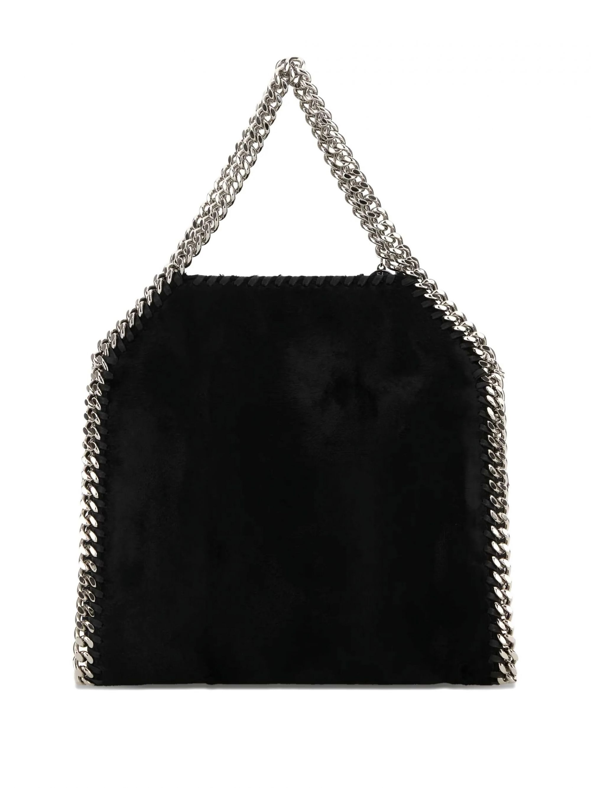 texture in velluto nero manico superiore a catena finitura metallica color argento