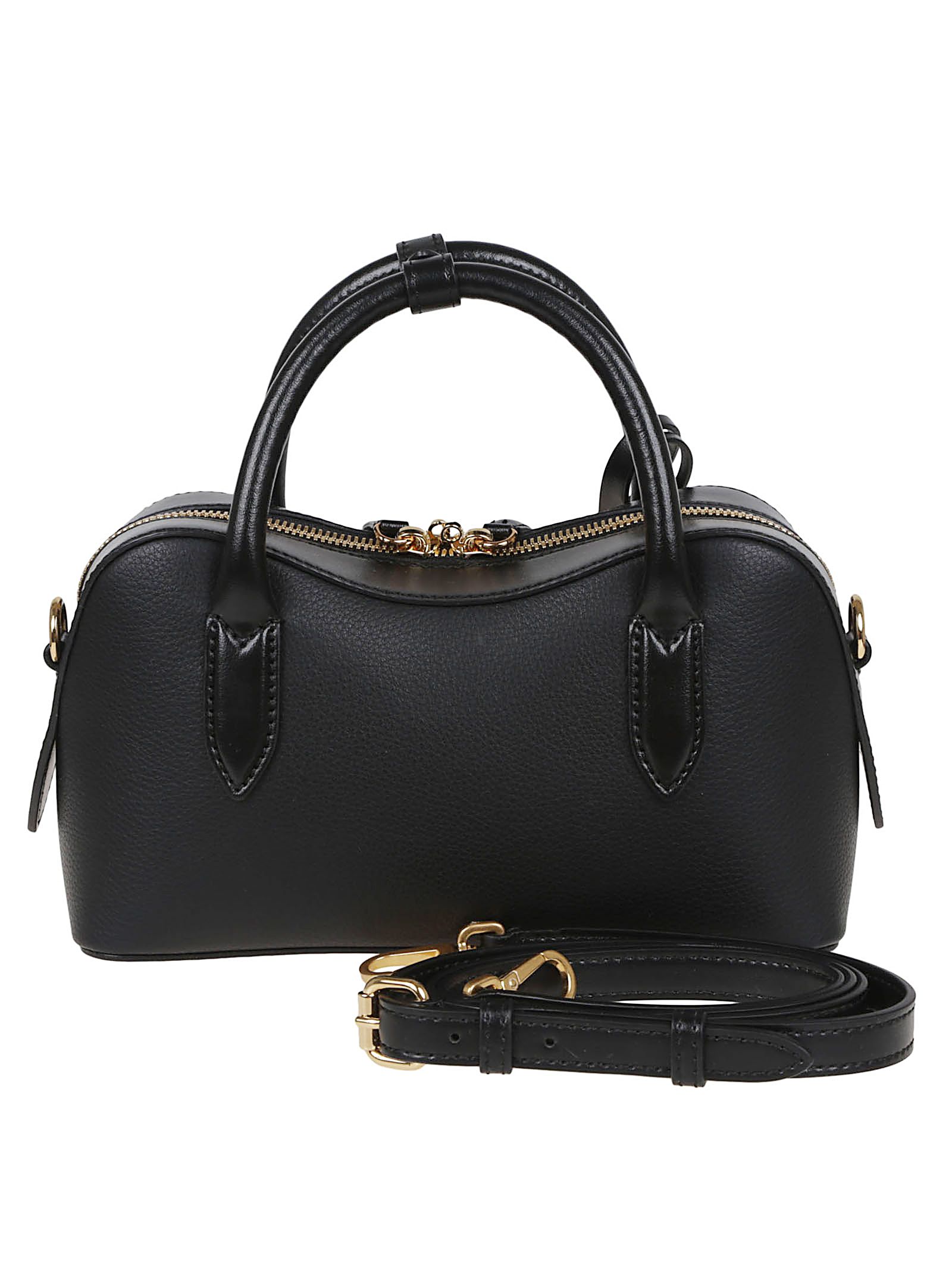 nero chiusura a zip bidirezionale due manici superiori cintura regolabile per la spalla dettaglio lucchetto logo impressa sul davanti finiture in tonalità oro piedini in metallo compartimento principale tasca interna a strappo logo interno impressa