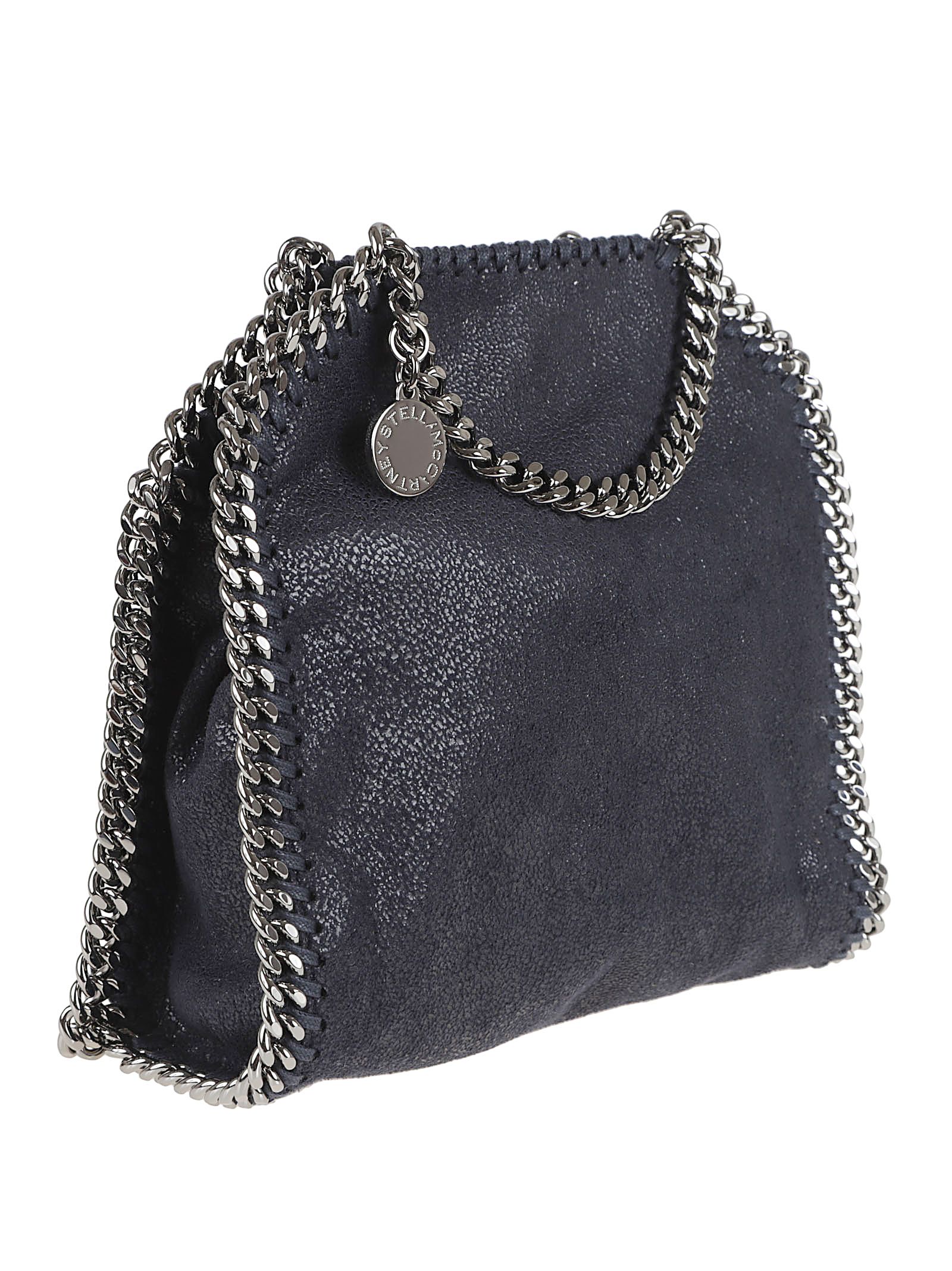 TINY Tote Falabella, un must del brand Stella McCartney presente in tutte le stagioni con la variante del colore. Chiusura con bottone a pressione e tasca interna.Caratterizzata da catena argento che segue il perimetro della borsa formando i manici sulla parte superiore, medaglietta con logo Stella McCartney, una terza catena che permette di indossare la borsa a tracolla o a spalla.Ideale da essere indossata sia sportiva di giorno con una sneakers che di sera con un outfit più elegante e femminile.