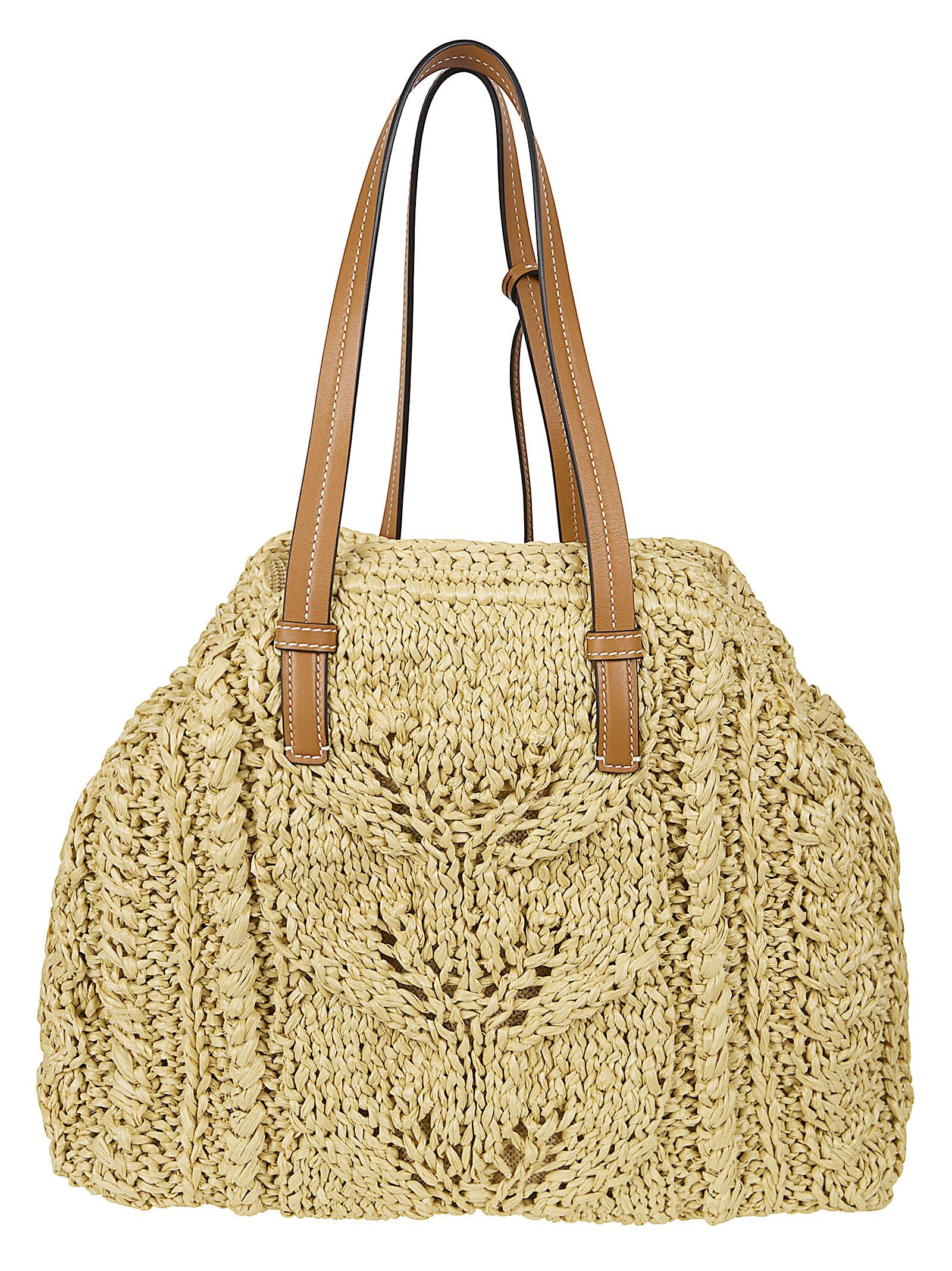 Shopper realizzata a mano con filati di rafia di ERMANNO SCERVINO.Manici in pelle; tasche interne per una maggiore resistenza e praticità.