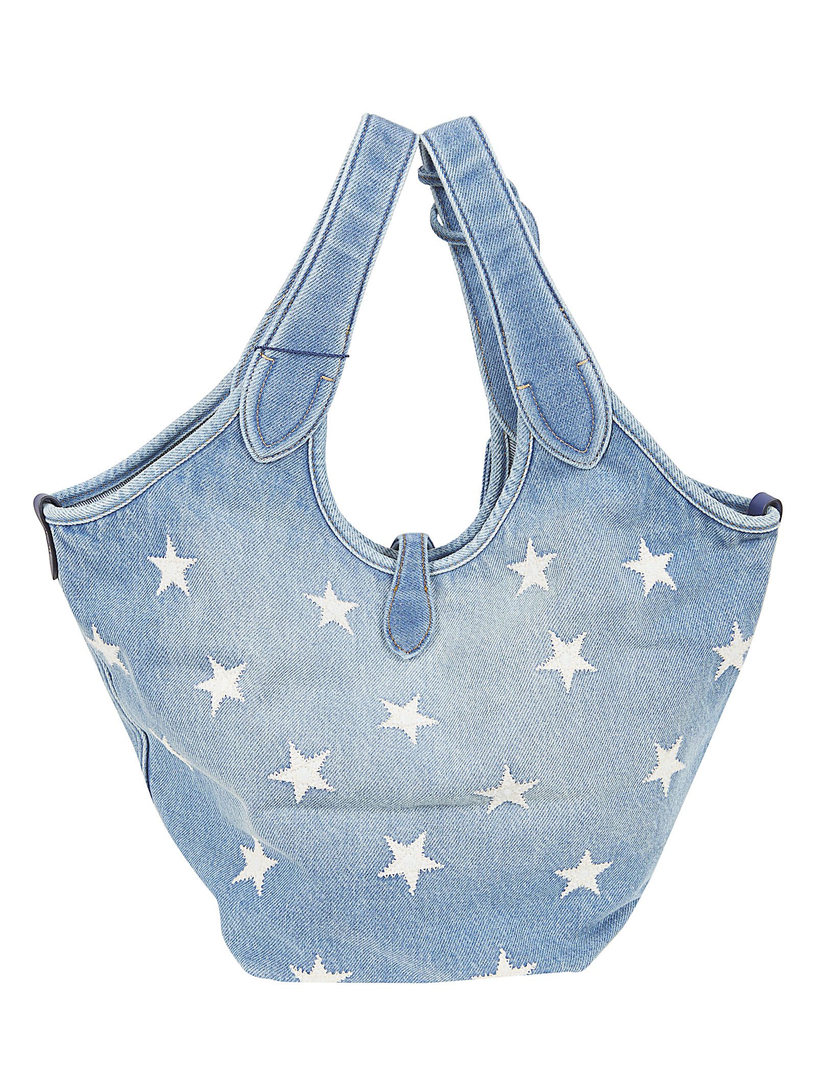 Borsa tote in denim di cotone lavato di POLO RALPH LAUREN.Chiusura con bottoncino; due manici superiori.Design a secchiello. Caratterizzata da stelle ricamate all over e portachiavi rimovibile.