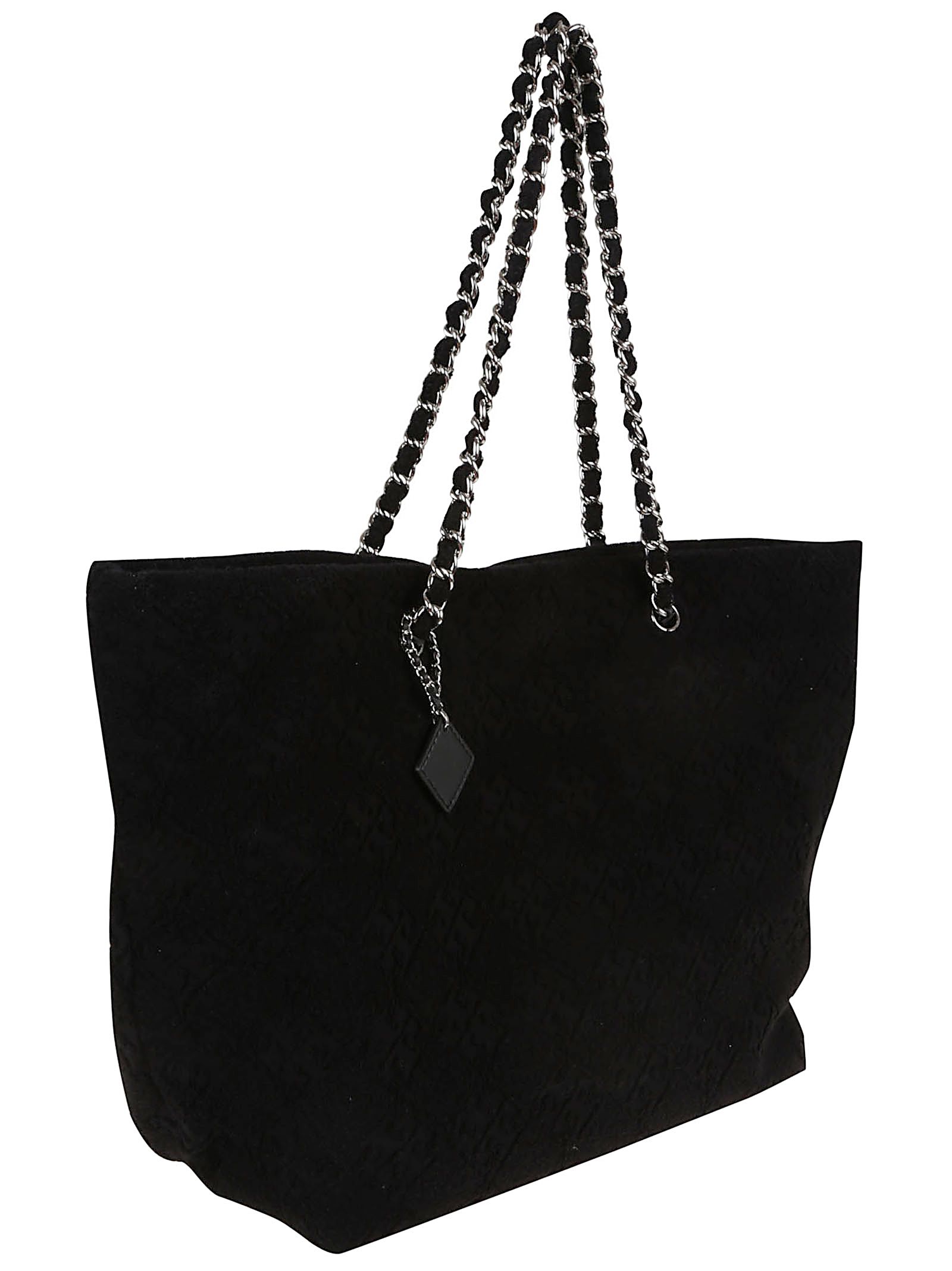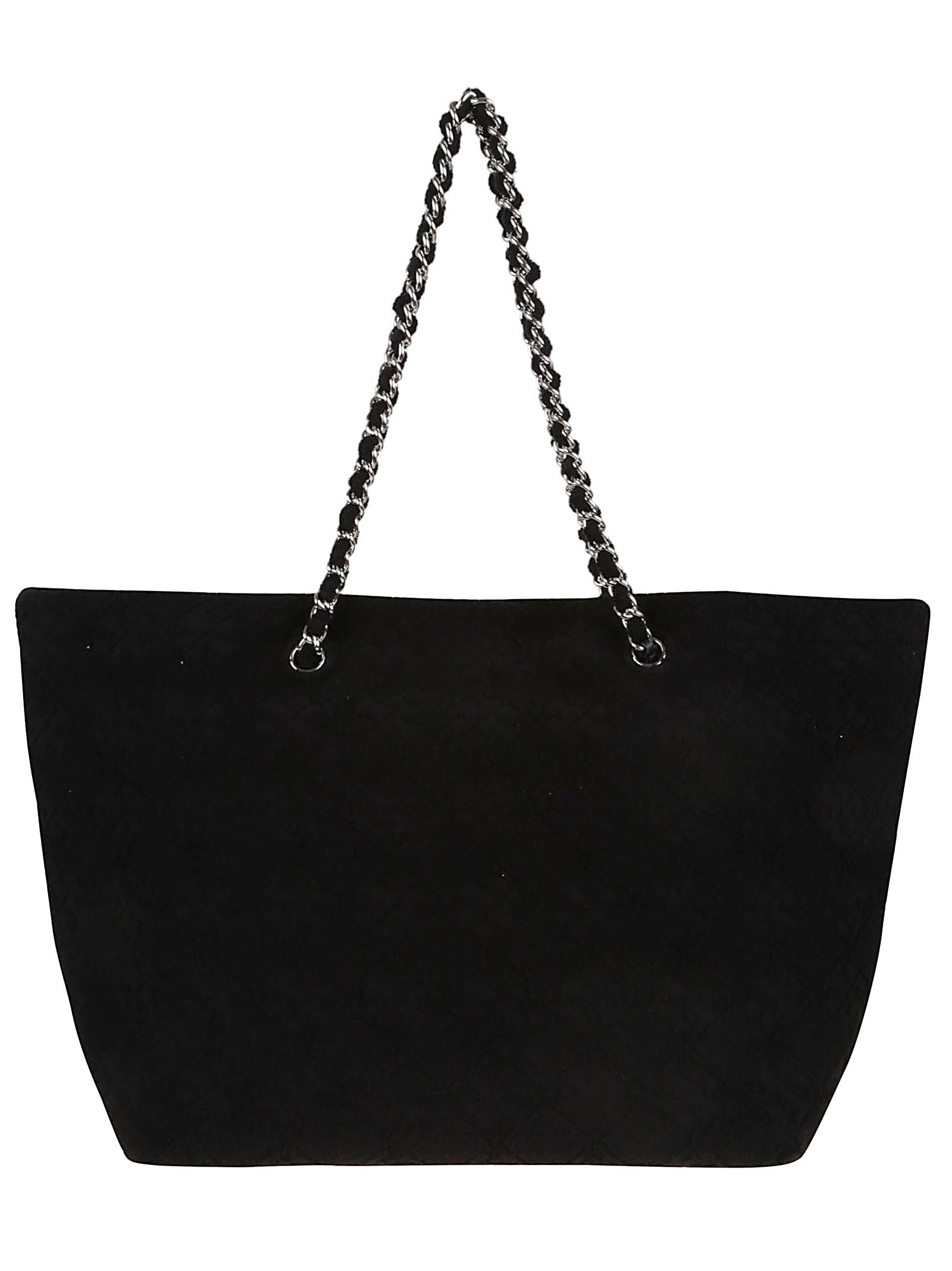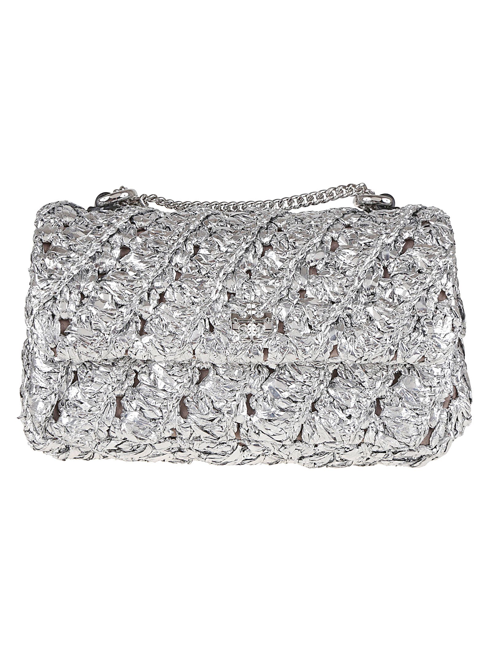 Borse Ella Chain Tote in morbida spugna di cotone di TORY BURCH.Chiusura a scatto magnetico; una tasca interna con cerniera; tracolle intrecciate in catena e pelle (25,5cm).