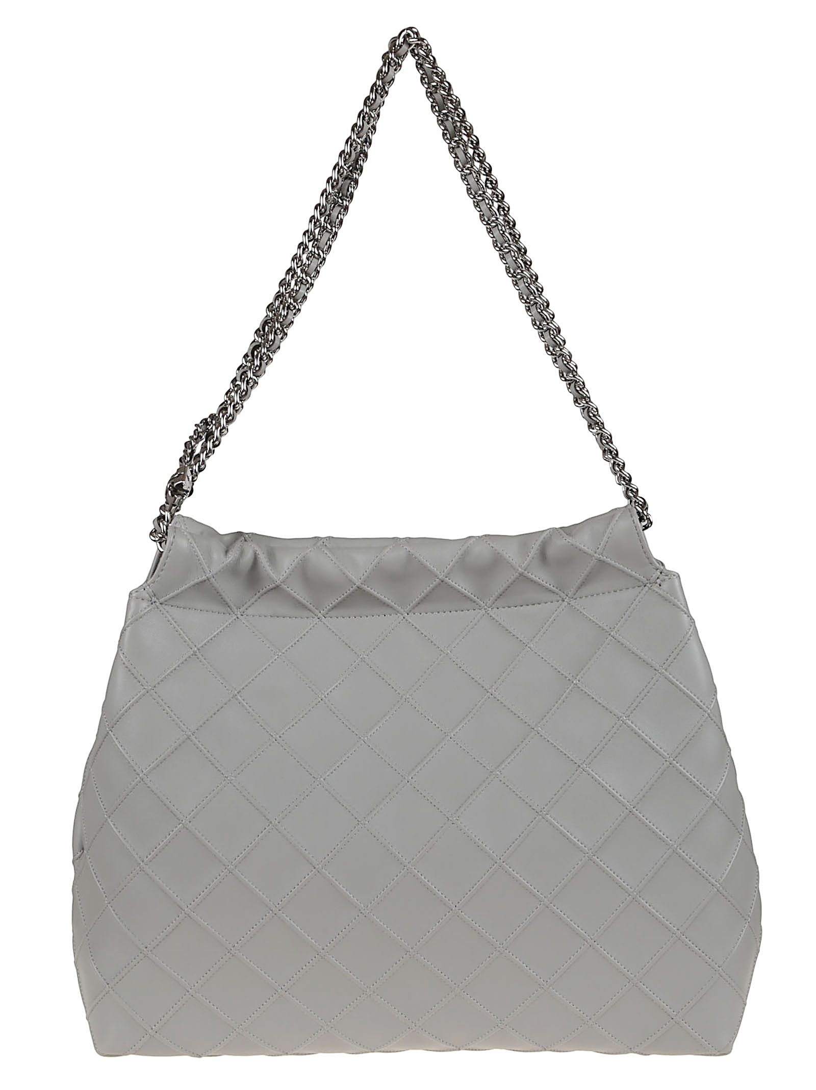 Borsa Fleming Hobo Fodera interna in microfibra simil suede, una tasca interna sul lato anteriore e una tasca interna con zip; chiusura magnetica; tracolla a catena intrecciata.Caratterizzata da coulisse e pinces che creano un motivo a diamante.