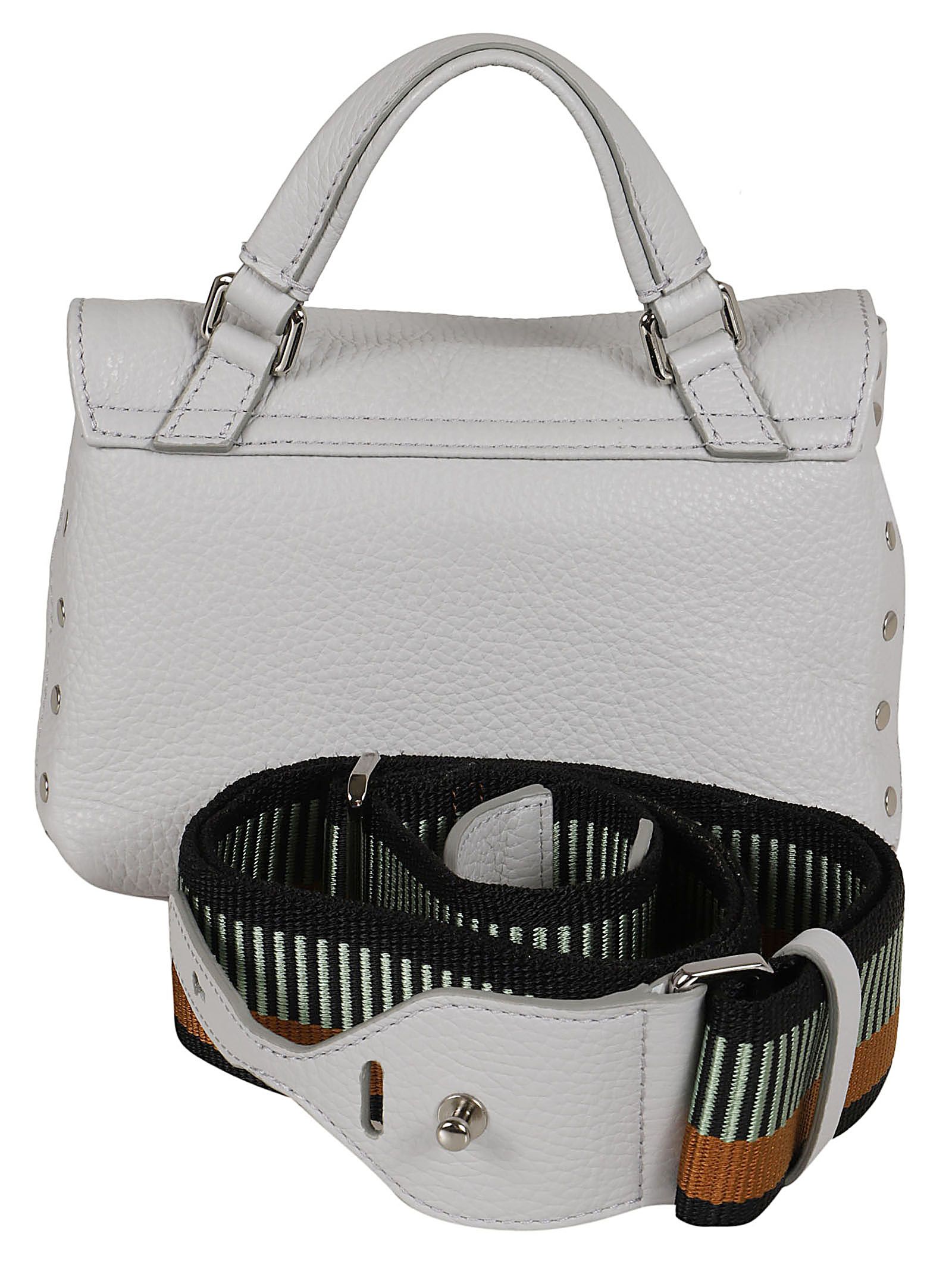 Classica Postina BABY in pelle di vitello by ZANELLATO. Un must del brand, presente in tutte le collezioni con la variante del colore e della dimensione. Caratterizzata da borchie piatte argento a contrasto, doppia chiusura a girello.All`interno sono presenti due tracolle, una in tessuto multicolore, una in pelle, entrambi removibili e allungabili, che permettono di indossare la borsa sia a mano che a tracolla. Ideale per essere indossata con qualsiasi outfit, sia sportivo che casual.