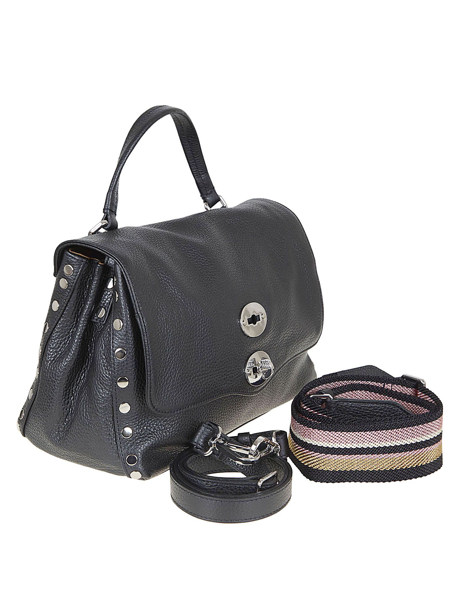 Classica Postina S in pelle di vitello by ZANELLATO. Un must del brand, presente in tutte le collezioni con la variante del colore e della dimensione. Caratterizzata da borchie piatte argento a contrasto, doppia chiusura a girello.All`interno sono presenti due tracolle, una in tessuto multicolore, una in pelle, entrambi removibili e allungabili, che permettono di indossare la borsa sia a mano che a tracolla. Ideale per essere indossata con qualsiasi outfit, sia sportivo che casual.
