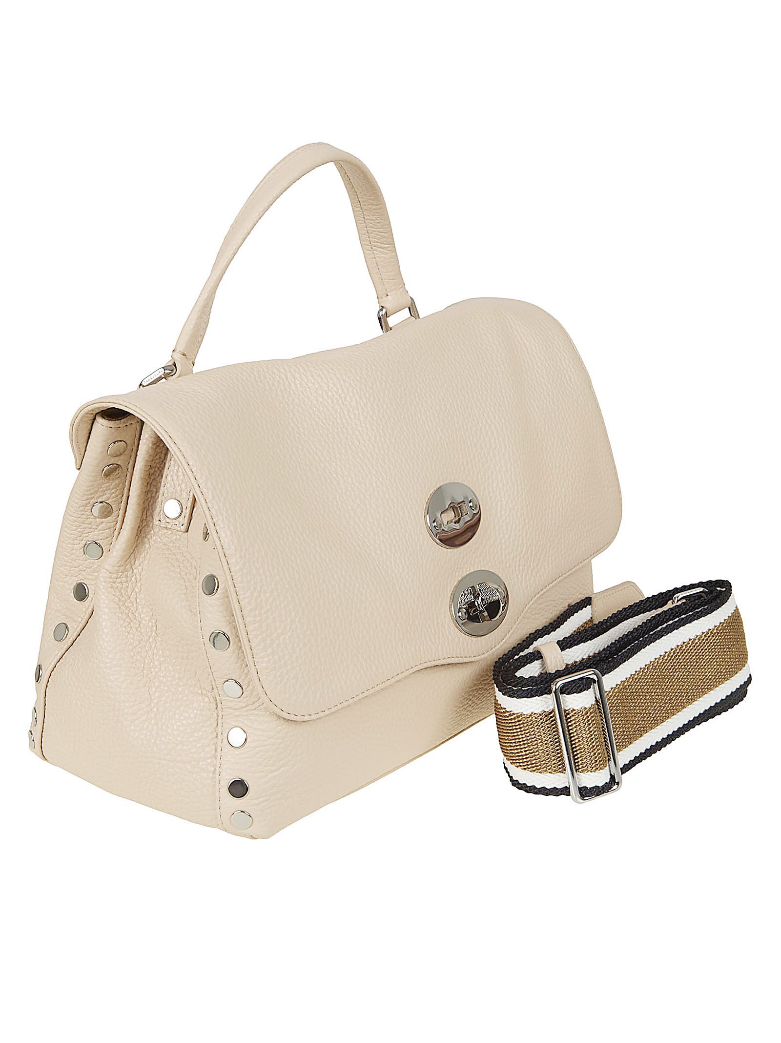 Classica Postina S in pelle di vitello by ZANELLATO. Un must del brand, presente in tutte le collezioni con la variante del colore e della dimensione. Caratterizzata da borchie piatte argento a contrasto, doppia chiusura a girello.All`interno sono presenti due tracolle, una in tessuto multicolore, una in pelle, entrambi removibili e allungabili, che permettono di indossare la borsa sia a mano che a tracolla. Ideale per essere indossata con qualsiasi outfit, sia sportivo che casual.