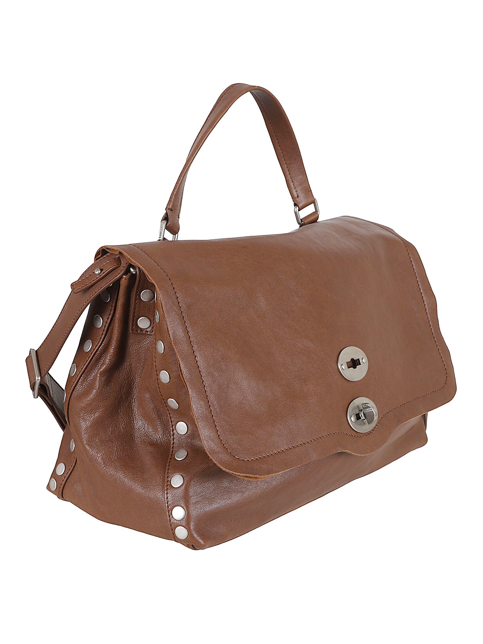 Borsa Zanellato modello Postina Tabacco M, realizzata in pelle liscia marrone. Caratterizzata da tracolla regolabile, scomparto interno con taschino e chiusura a girello, presenta una lavorazione artigianale e dettagli in hardware argentato