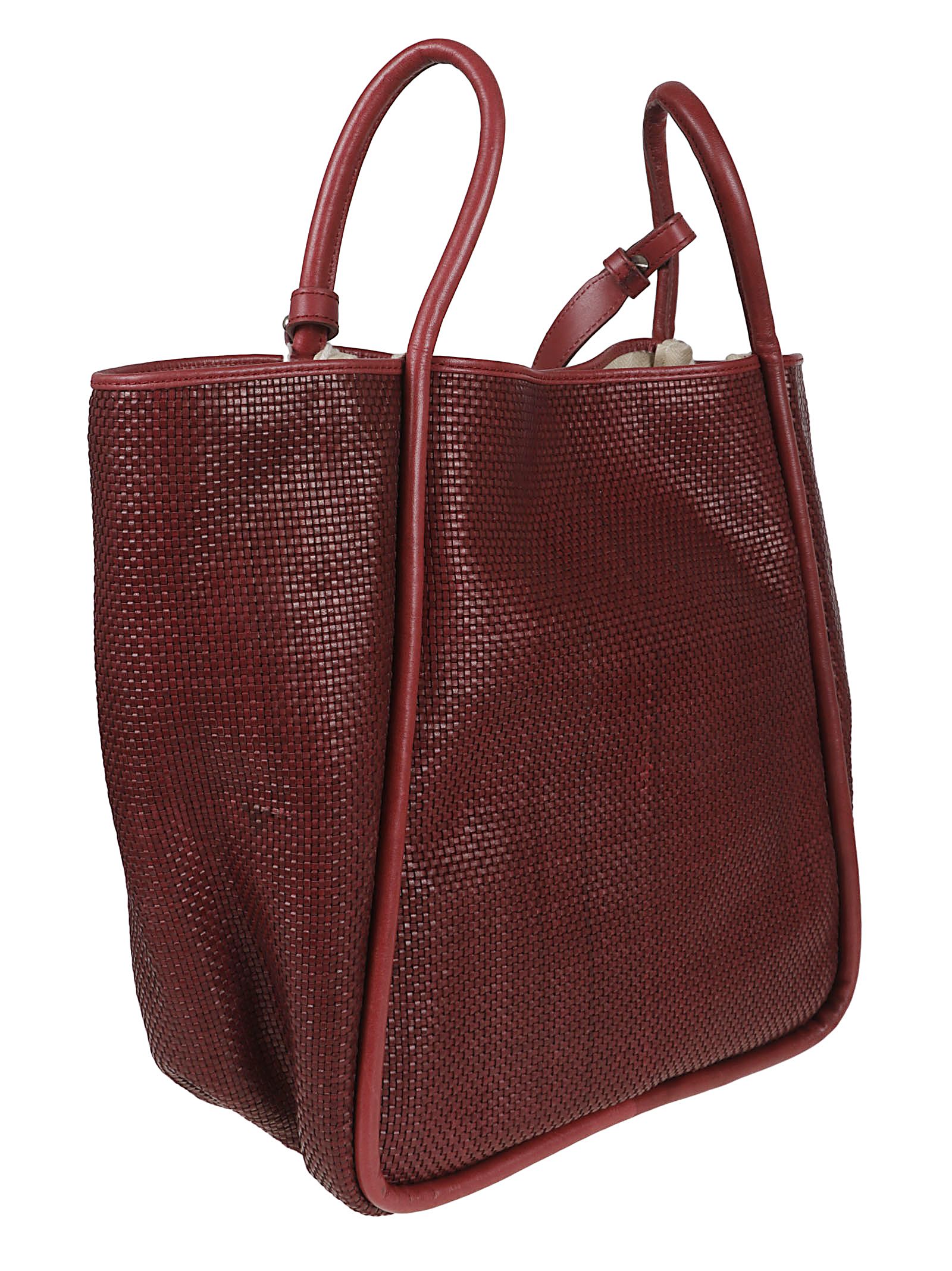 Borsa a mano "Ana" in pelle di vitello di DRAGON.Cestino intrecciato a mano; interno con fodera."All`interno di ogni borsa Dragon Diffusion è cucito a mano un ciondolo raffigurante una medaglia anticata di San Cristoforo, in omaggio al santo patrono dei viaggiatori: il sigillo di autenticità del nostro marchio."