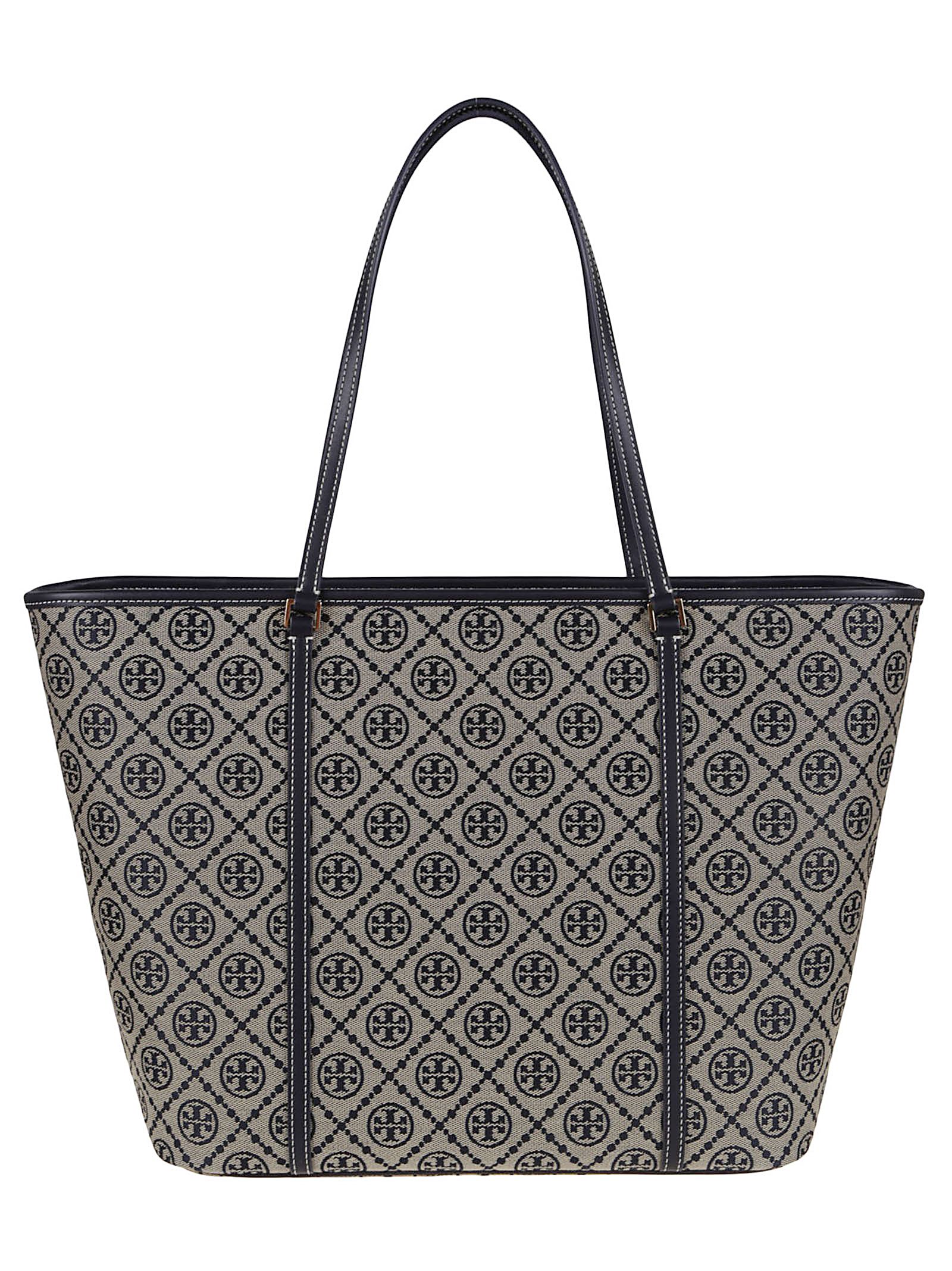 Tote T Monogram in jacquard intrecciato e pelle di TORY BURCH.Fodera in cotone; chiusura superiore con zip; maniglie superiori con caduta.Impreziosita da pochette rimovibile con cerniera.