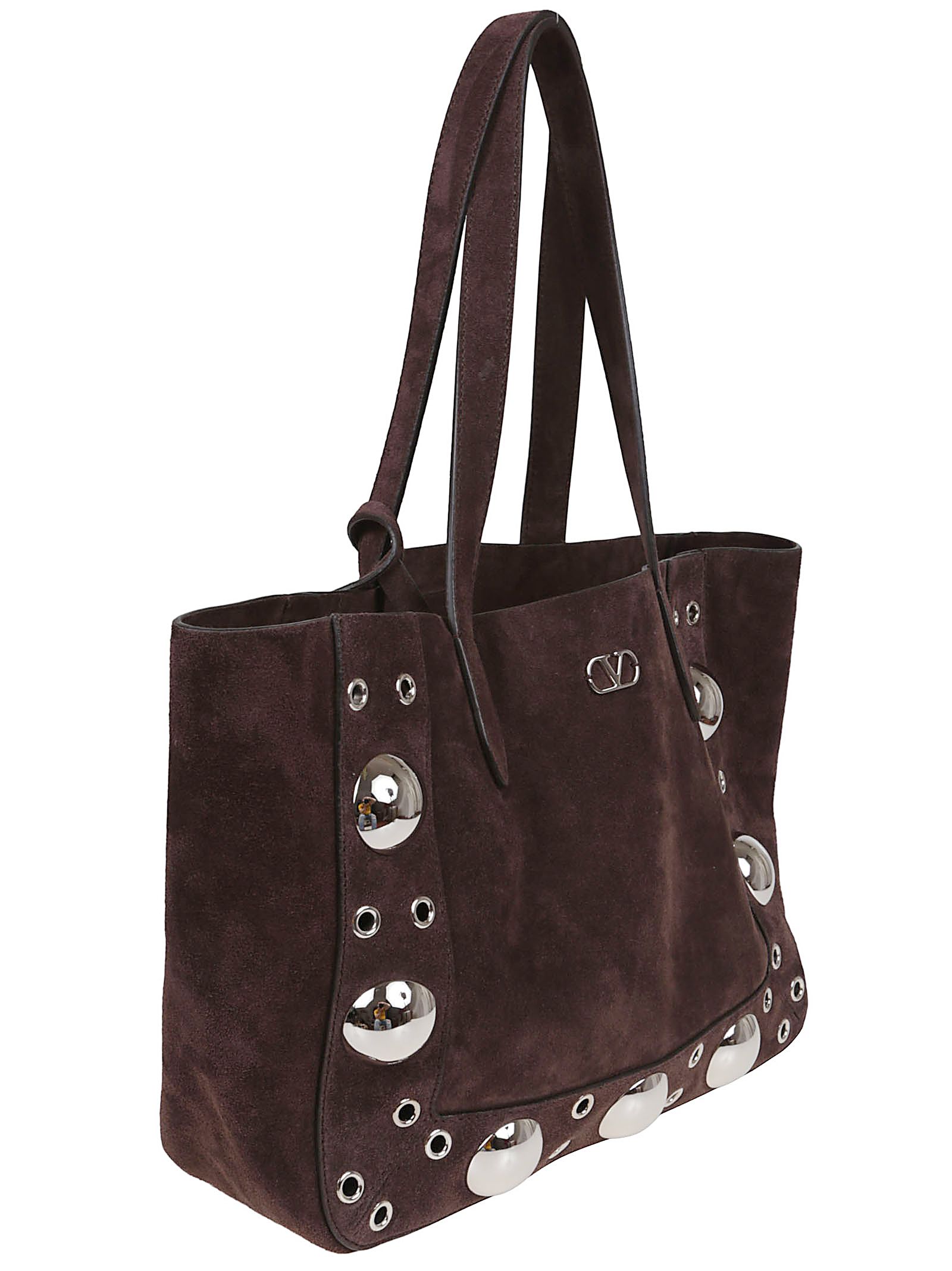 marrone scuro decorazioni con borchie a sfera dettagli con fori due manici superiori firma VLogo