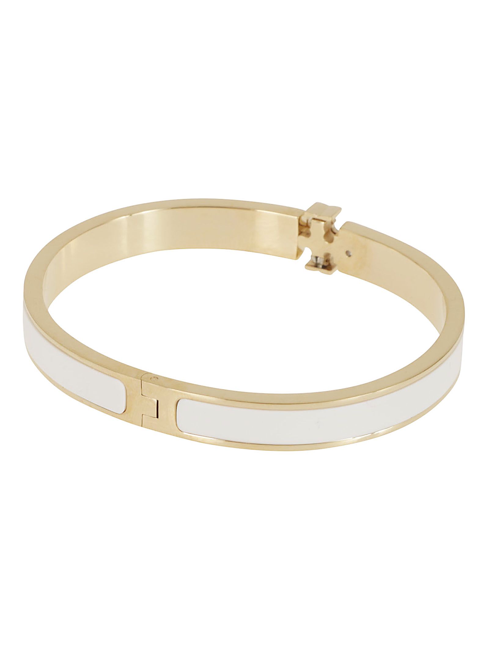 Braccialetto Thin Kira placcatura in oro 18 carati su ottone smalto di TORY BURCH.Chiusura a scatoletta .Caratterizzato da smalto liscio a doppia T satinata.