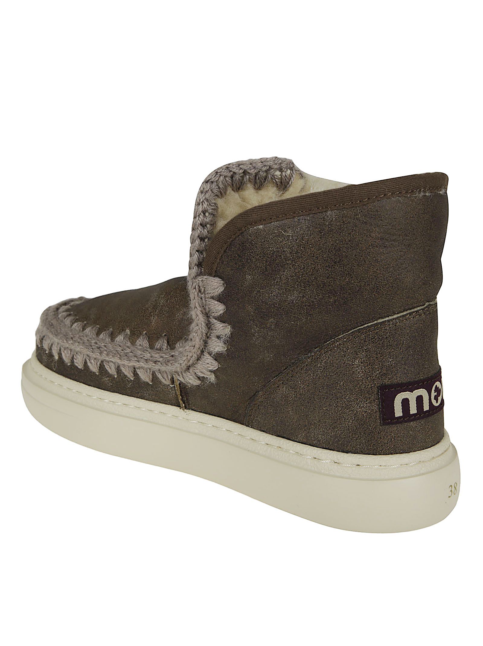 Eskimo sneaker in morbida pelle di montone double face; dettagli all`uncinetto tono su tono; suola in gomma resistente e morbida. H15.5cmIdeali da essere indossati in una fredda giornata invernale, per un outfit casual, caldo e alla moda