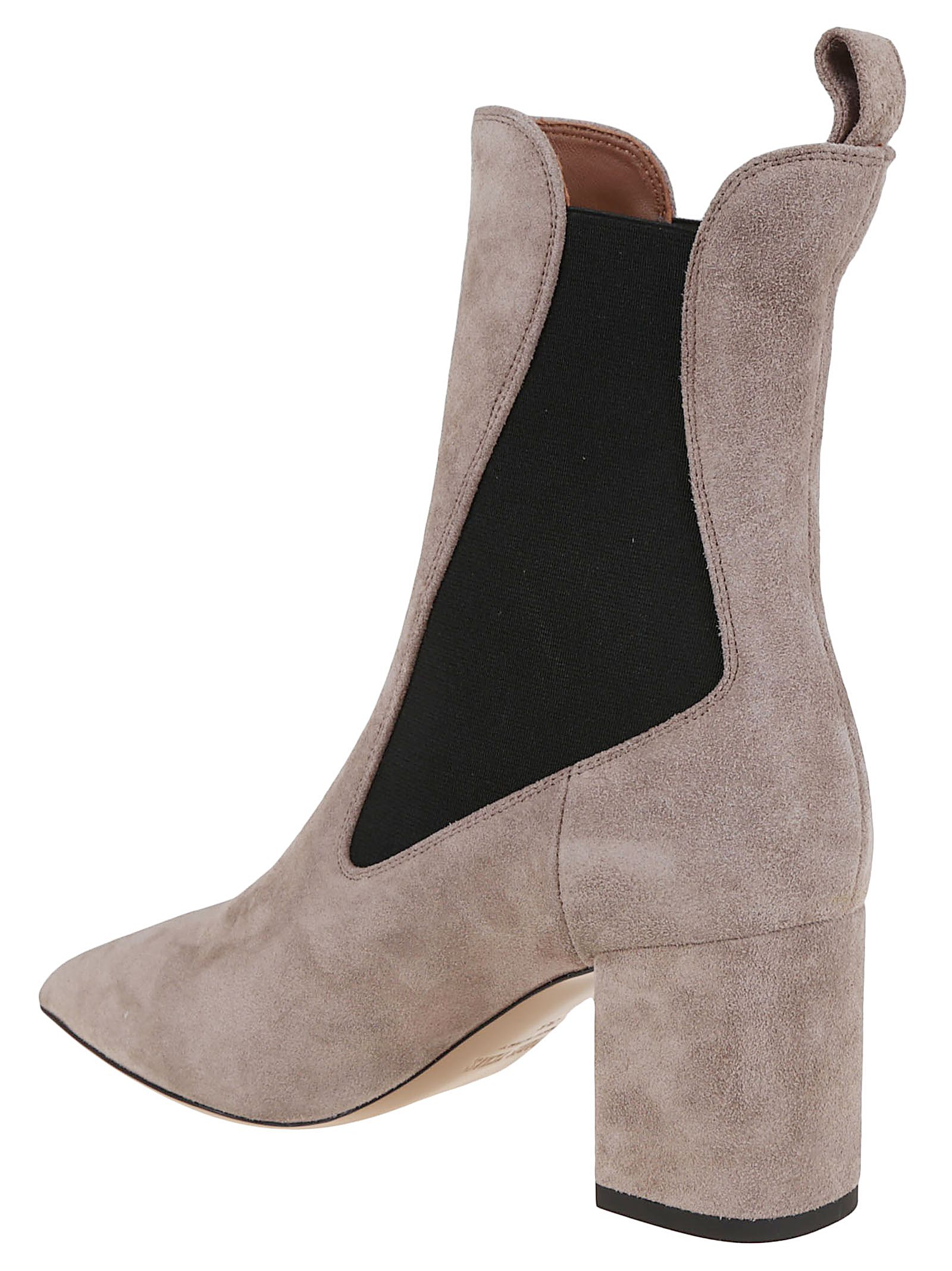 Stivaletti ANJA in pelle scamosciata di PARIS TEXAS.Punta a punta; elastico laterale; tacco chunky rivestito tono su tono (7cm).