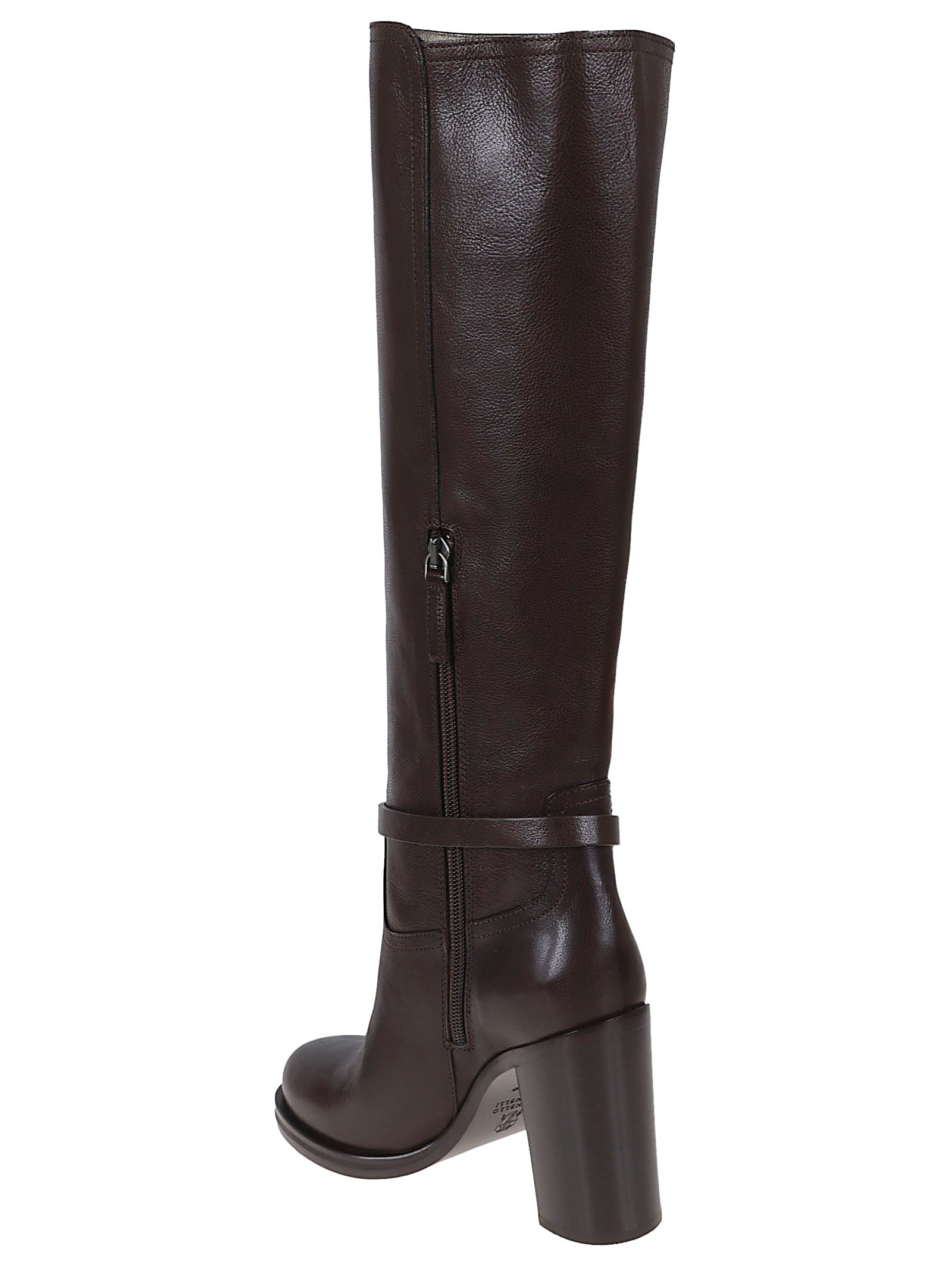 Stivale in pelle di BRUNELLO CUCINELLI.Ispirato al mondo dell`equitazione, silhouette al ginocchio lievemente aderente, che avvolge e slancia la gamba con naturalezza; punta arrotondata; tacco a blocco (10cm) e suola in gomma.Caratterizzato da cinturino removibile alla caviglia, omaggio all`estetica Equestrian con brillante dettaglio in monile, decorazione iconica del brand.