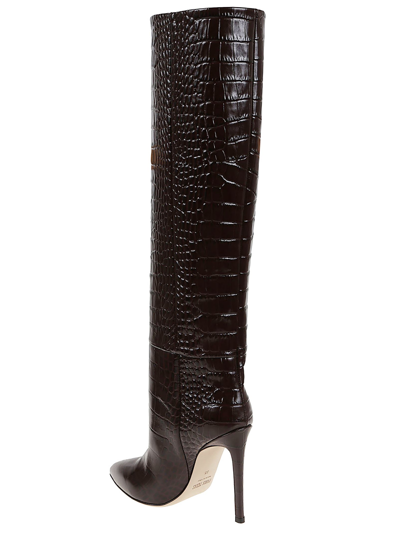 Stivale STILETTO in pelle effetto cocco di PARIS TEXAS.Punta a punta; tacco stiletto (10,5cm) tono su tono. Gambale a tubo (taglia 37 IT-EU: altezza 40cm, circonferenza 36cm).