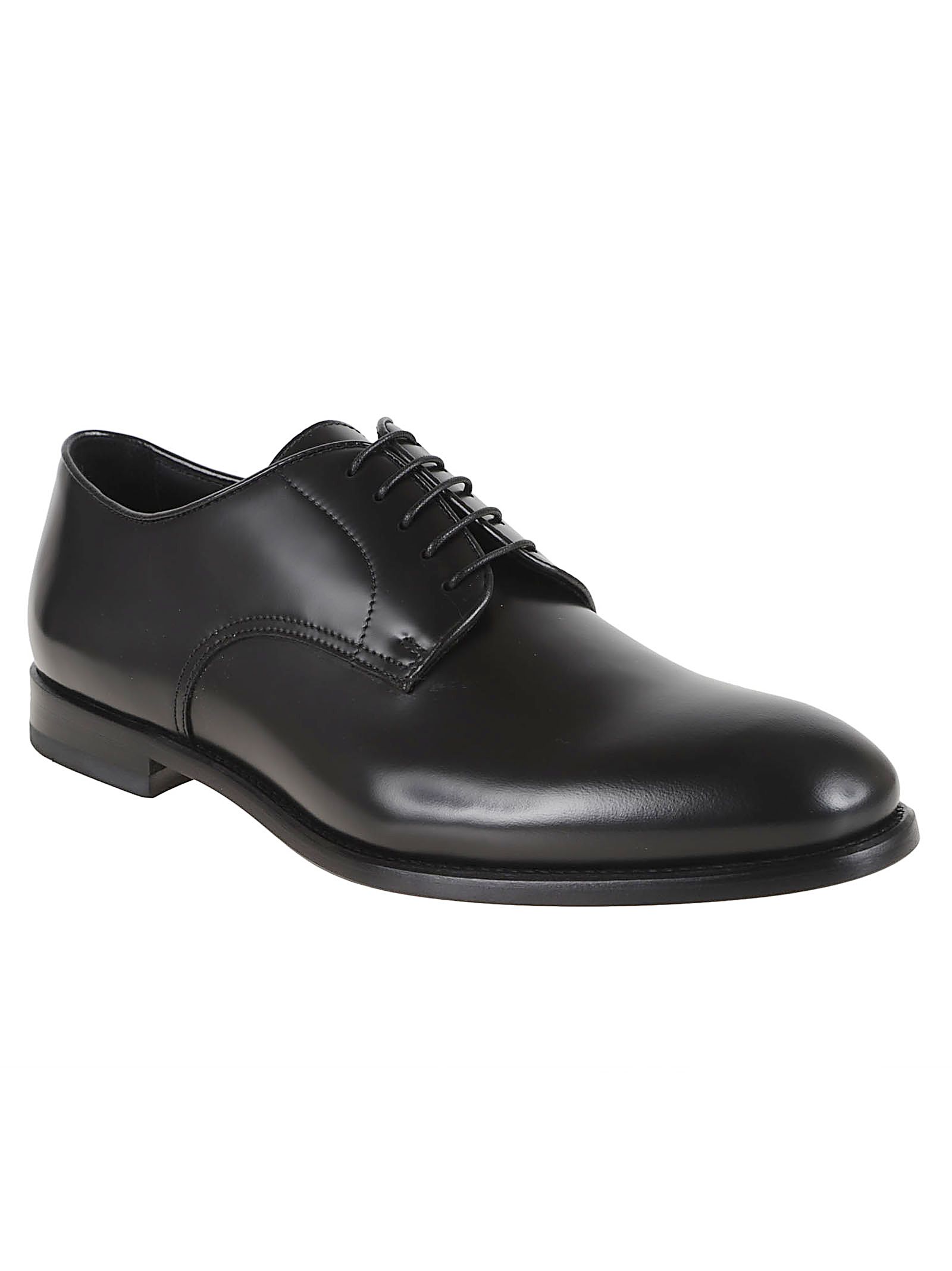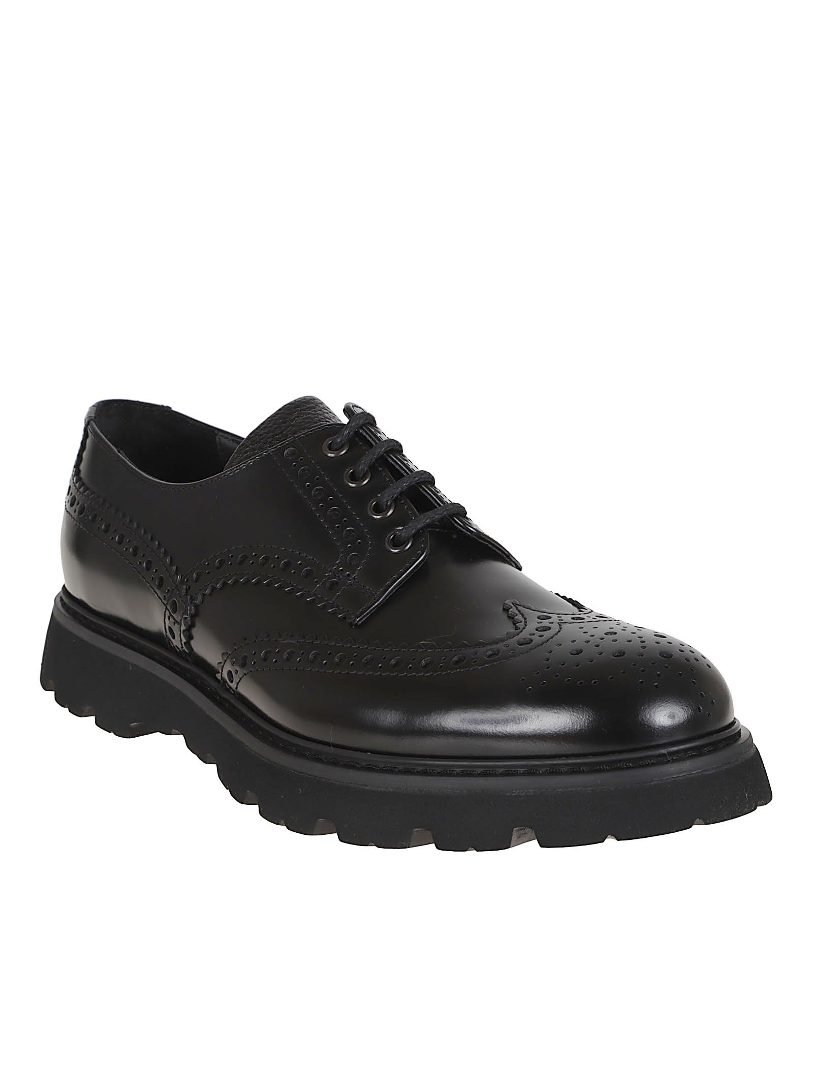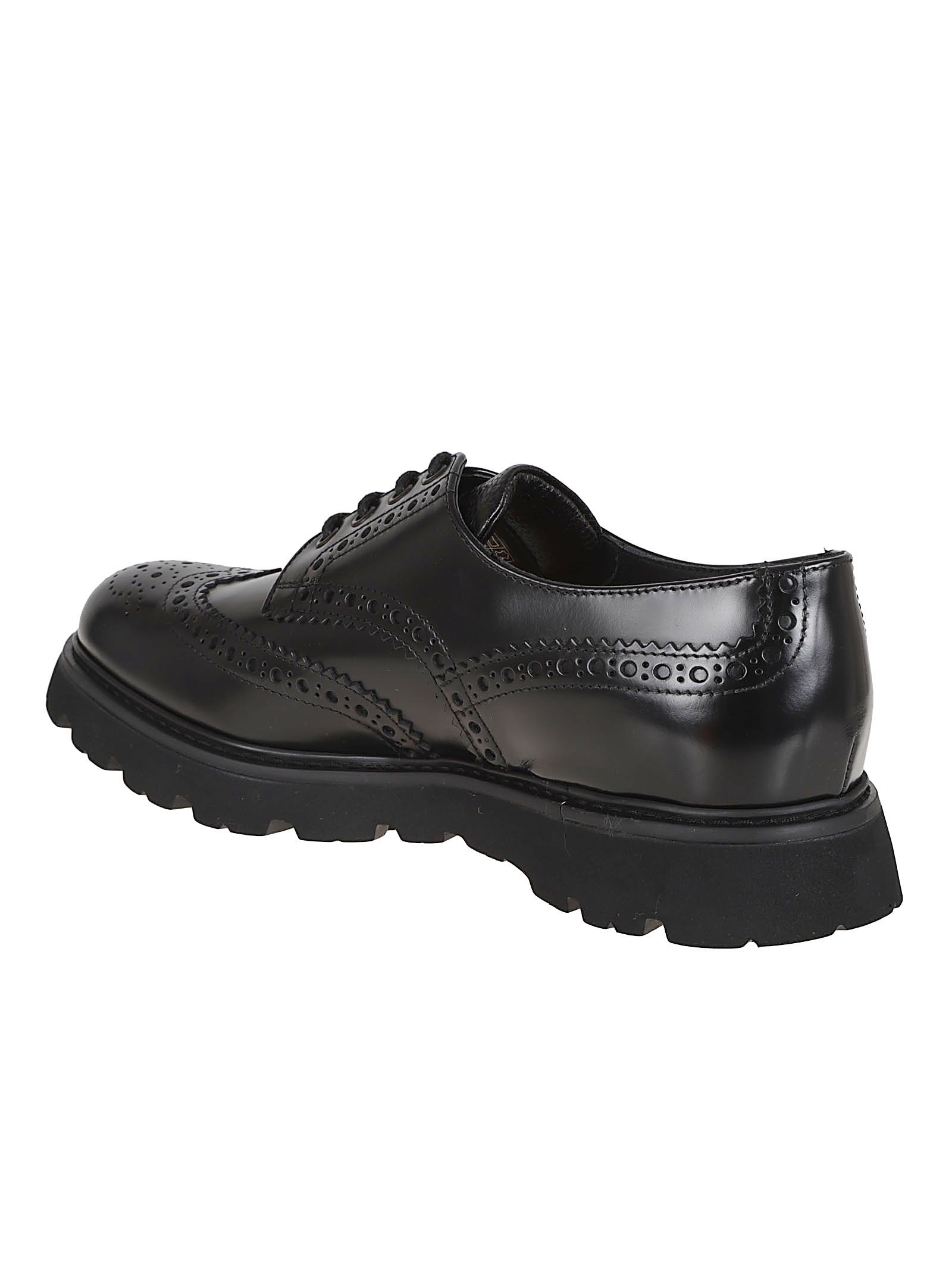 pelle di vitello nera chiusura con lacci dettagli brogue suola in gomma