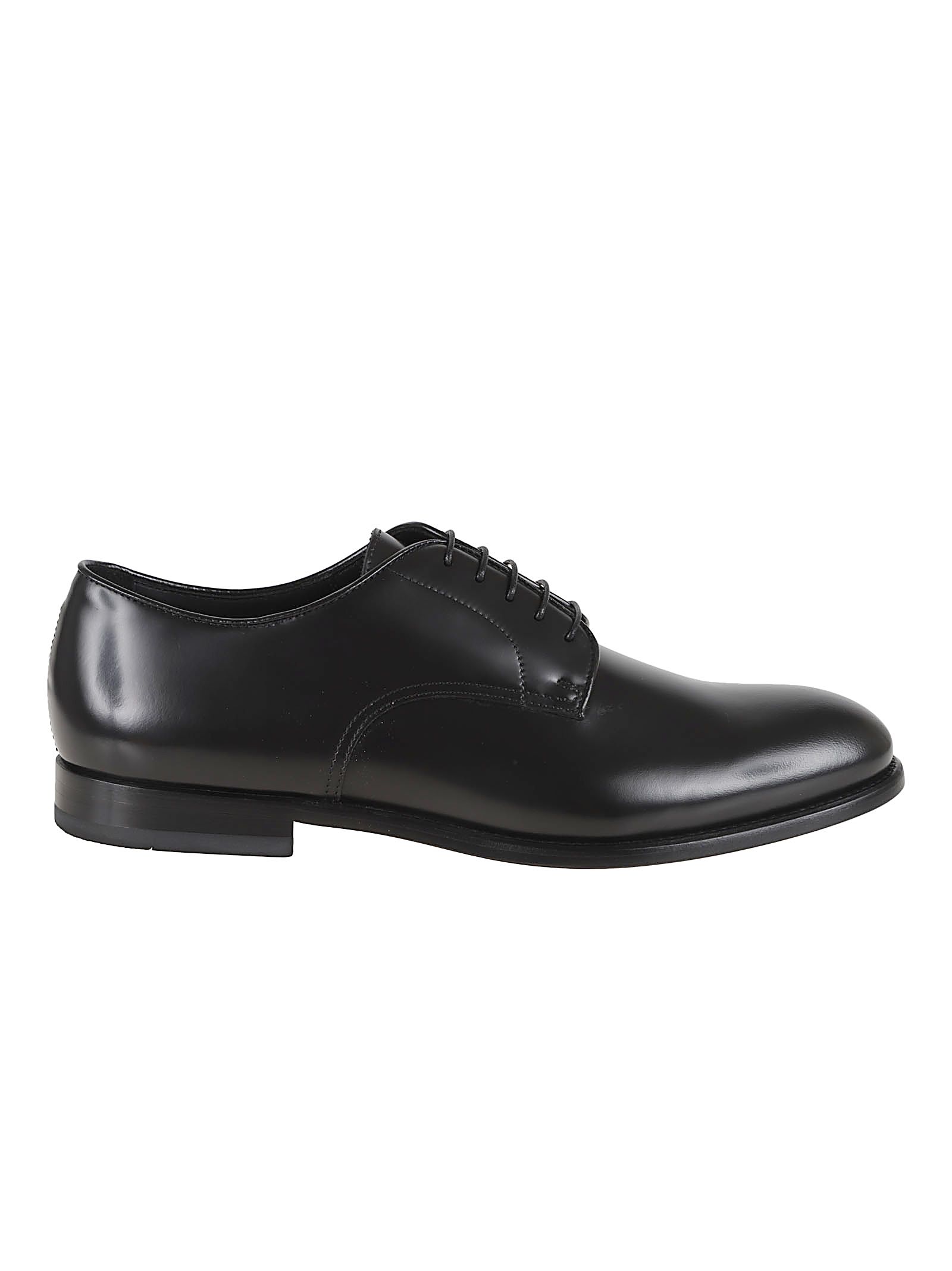 Stringata modello Derby in pelle di vitello spazzolata di DOUCAL`S.Cinque fori; linee arrotondate; suola in cuoio e tomaia liscia.