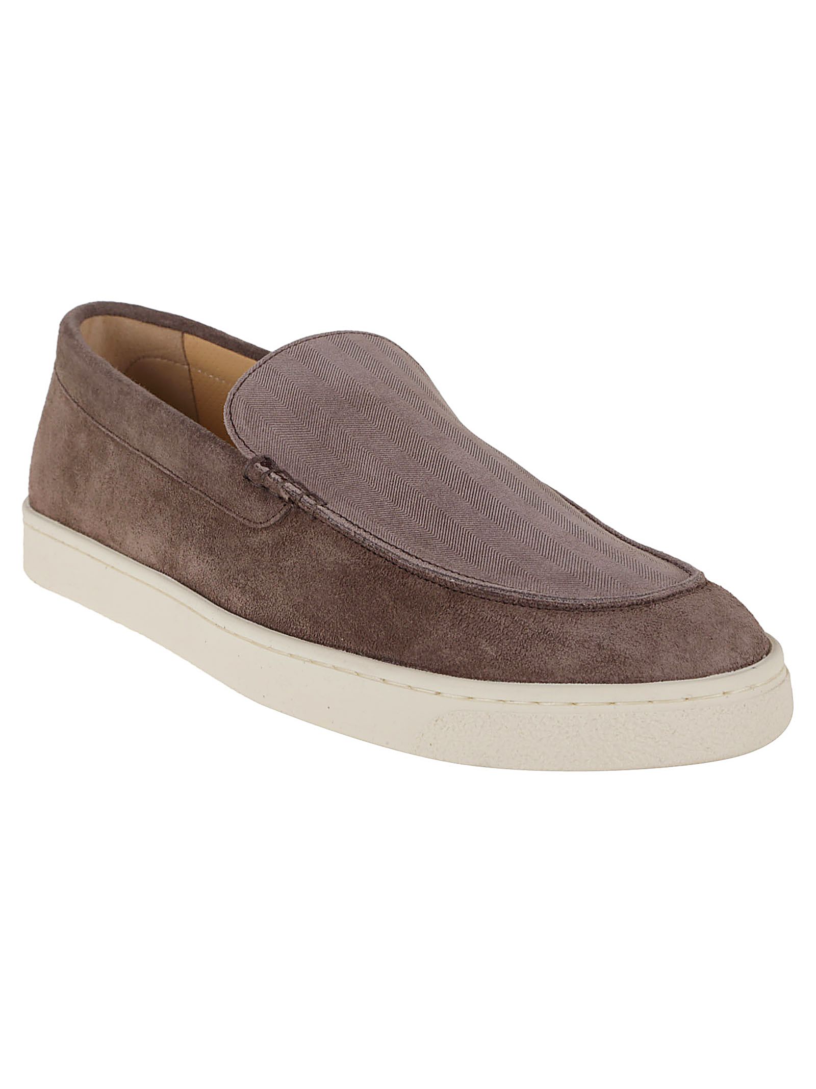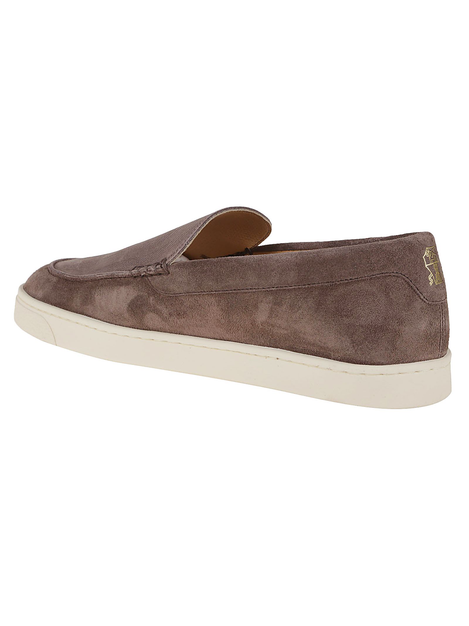 mocassino con suola in gomma grigio talpa punta a mandorla dettaglio cucitura rialzata soletta in pelle con marchio suola piatta in gomma