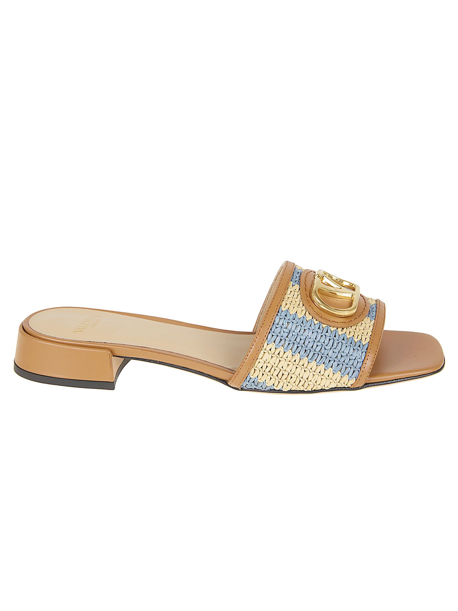 Sandalo Slide in rafia sintetica e pelle di vitello di VALENTINO GARAVANI.Tacco largo fasciato (2cm)Caratterizzata da accessorio VLogo Signature.