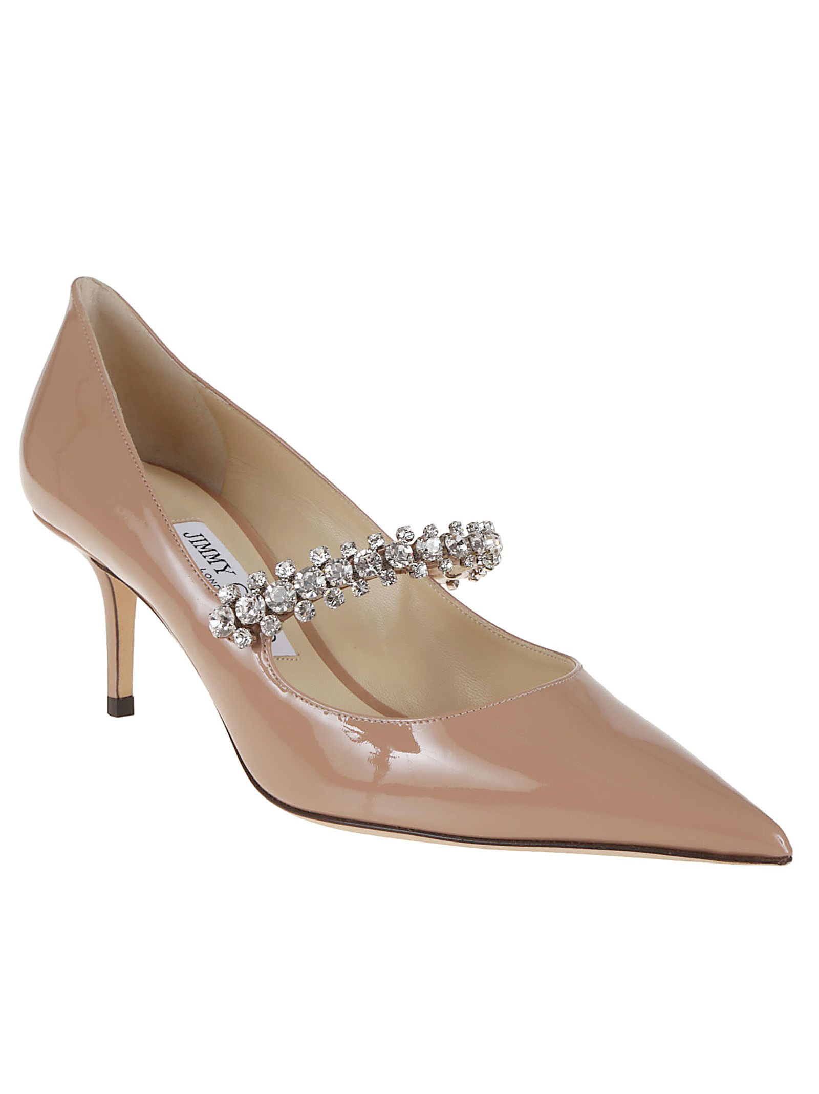 Decolleté Bing in pelle verniciata di JIMMY CHOO.Design a punta; design classica décolleté; tacco 6,5cm.Decorate da un cinturino di cristalli sulla parte superiore.