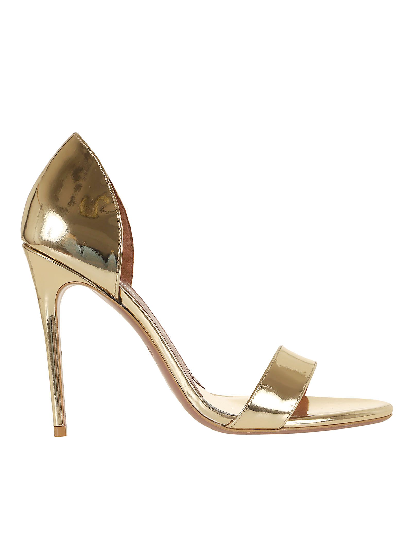 Realizzato in pelle con finitura metallica effetto specchio color oro.Tacco: Dotato di un tacco a stiletto sottile, generalmente tra i 95mm e i 105mm.