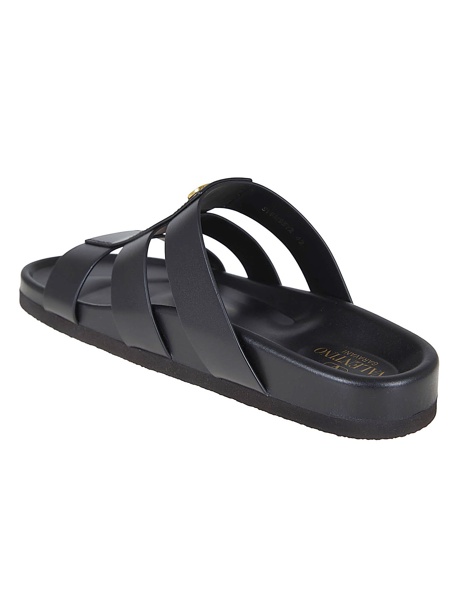 Sandalo Slide in pelle di vitello di VALENTINO GARAVANI.Suola in gomma; caratterizzato da dettaglio VLogo Signature finitura ottone effetto anticato.