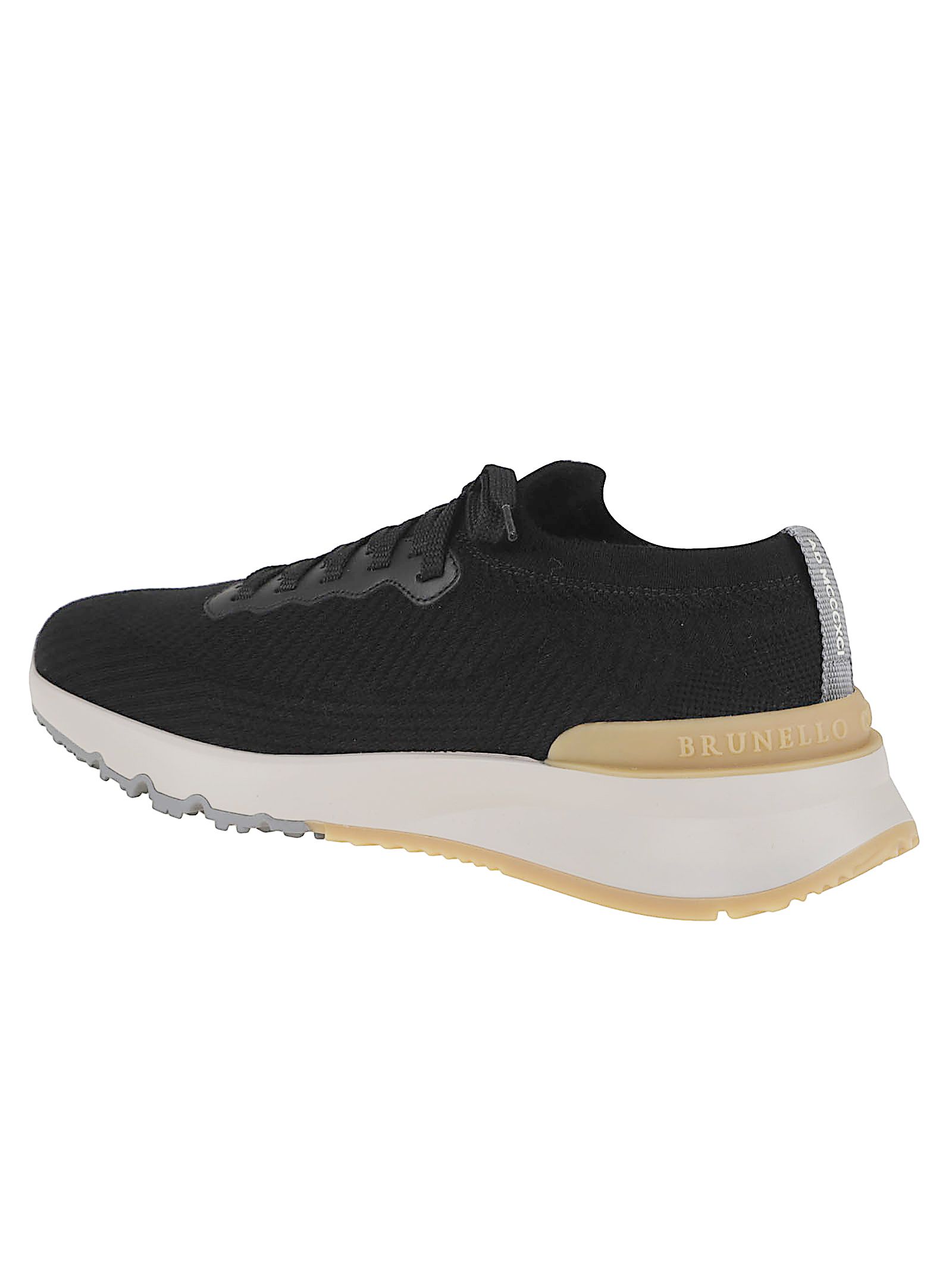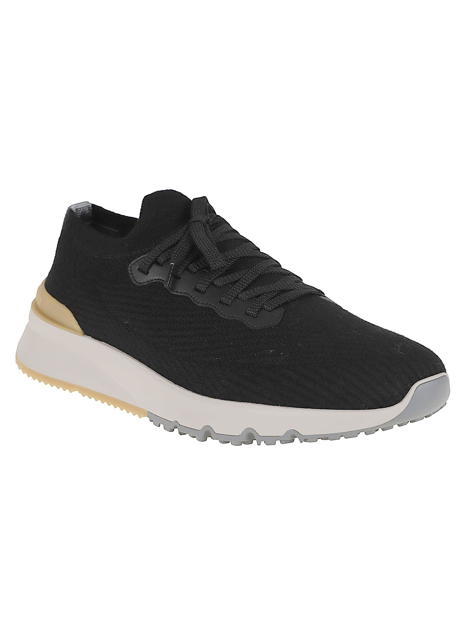 Sneakers in lana BY BRUNELLO CUCINELLI.Filato lavorato con la tecnica jacquard per creare l`effetto delle coste; profili in pelle di vitello semilucido; fodera interna in lana vergine.Chiusura con lacci piatti in tessuto.Ispira lo stile delle runners.