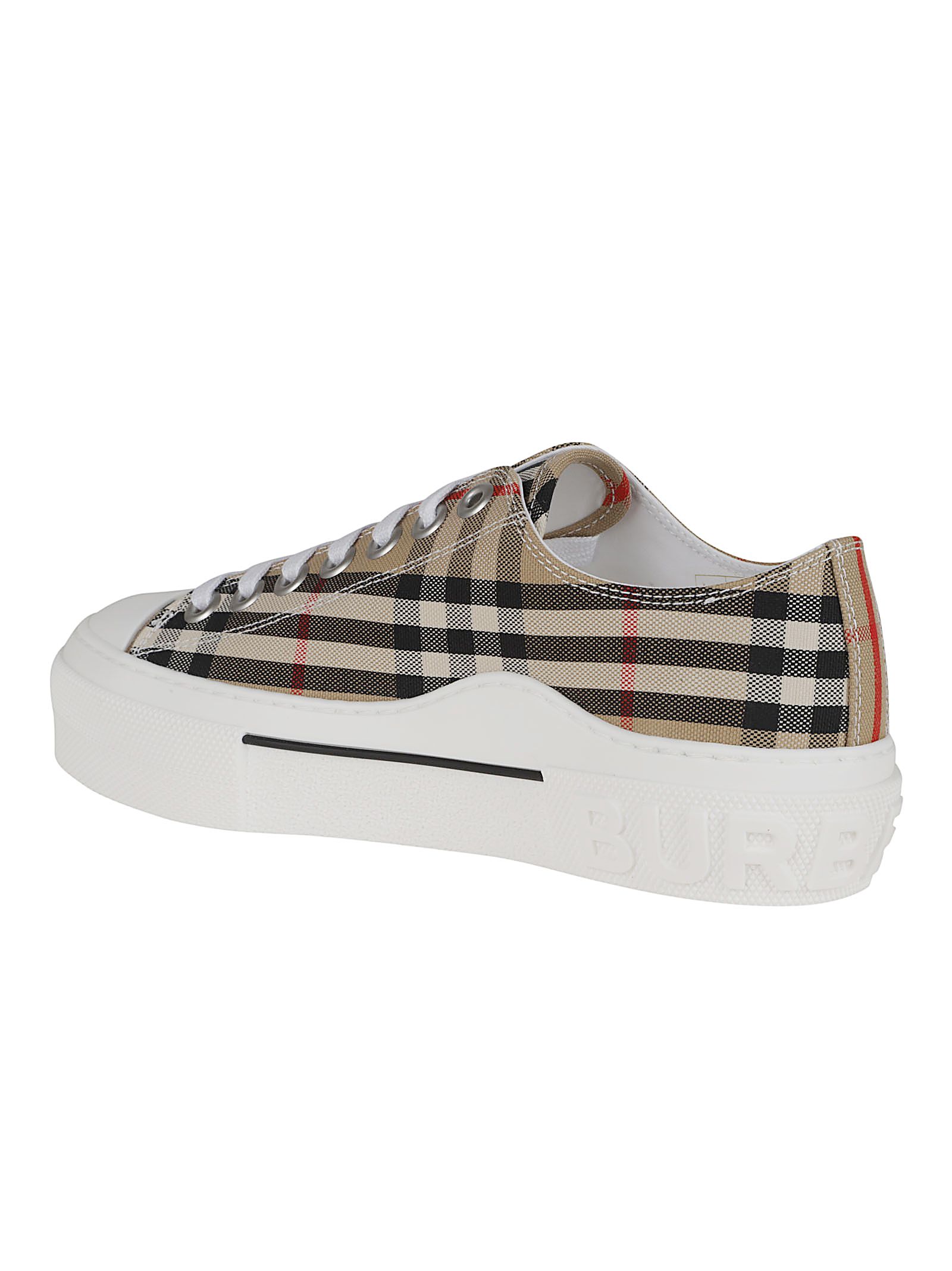 Archivio in cotone beigeMotivo a quadri vintageChiusura frontale con lacciPunta a contrastoSuola piatta in gommaLogo in rilievo sul retro