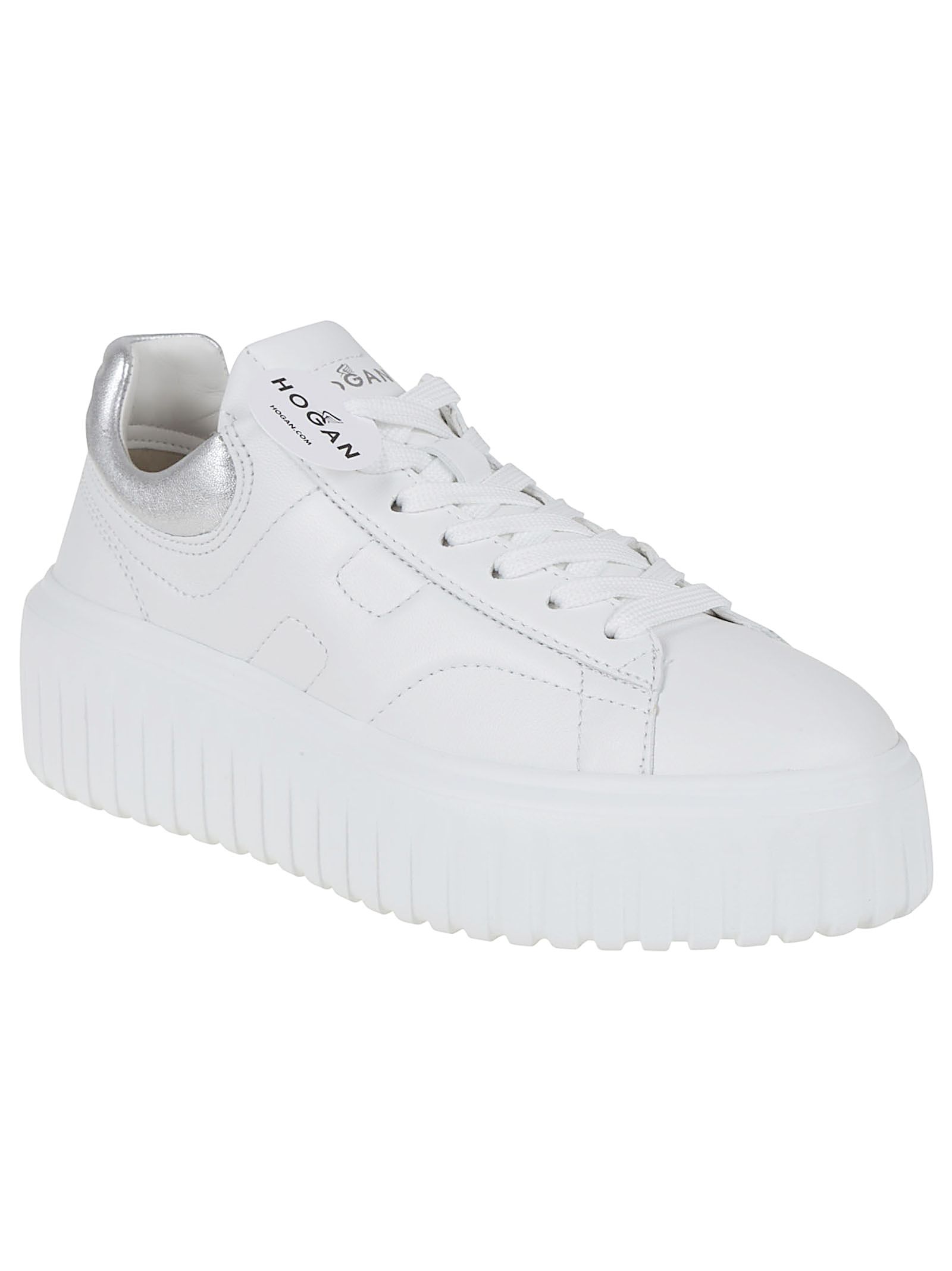 Sneakers Hogan H-Stripes in nappa BY HOGAN.Suola in gomma extralight con righe verticali e onde sul battistrada; bordo superiore, con cuciture sul talloncino, ha una morbida imbottitura.Dettaglio H laterale che si estende su tutto il lato con impunture tono su tono.Altezza totale 5,8 cm.